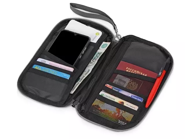 Органайзер для документов "Keep Safe" – незаменимый аксессуар для современного путешественника. Он позволяет держать под рукой все важные документы и легко извлекать их при необходимости. Изготовлен из плотного текстиля, который устойчив к износу и при необходимости легко чистится. • Несколько отделений разной формы позволяют разместить паспорт, проездные билеты, путевки, пластиковые карточки, удостоверения и другие важные документы • Плотные стенки надежно защищают содержимое от деформации и обеспечивают сохранность документов во время длительной транспортировки • Крепление для ручки фиксирует письменные принадлежности, и они не выпадут при открытии органайзера • Ремешок делает органайзер удобным для переноски в руке