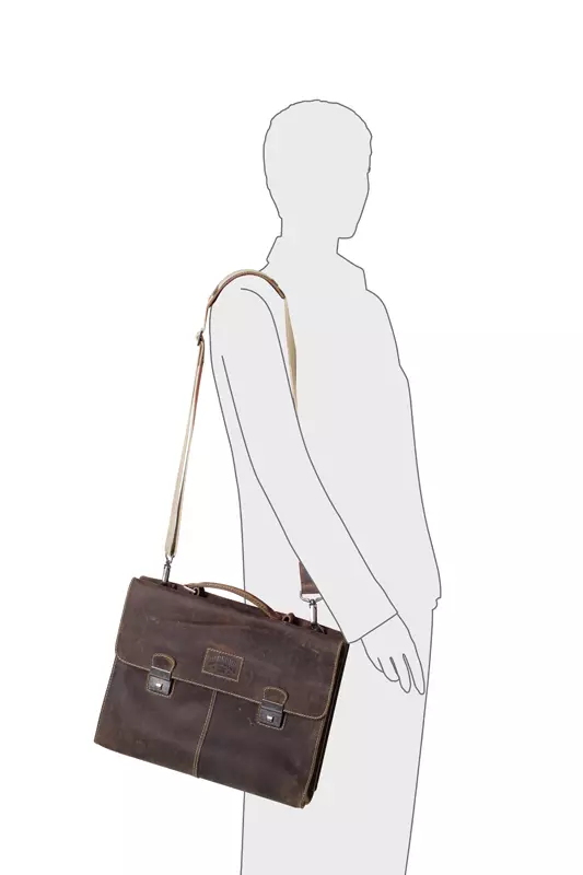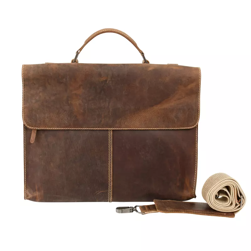 Портфель KLONDIKE Native, натуральная кожа в коричневом цвете, 40 х 11 х 31 см