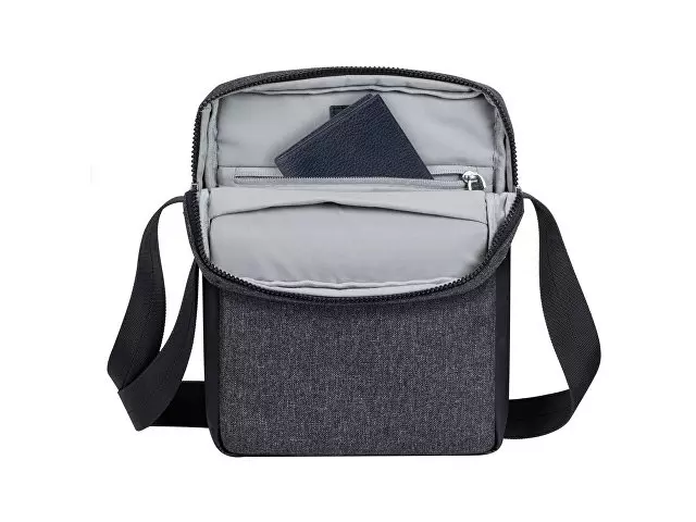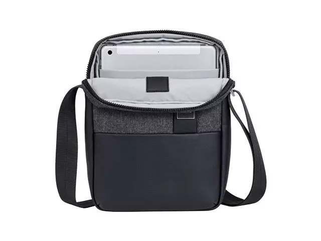 Сумка через плечо. • Выполнена из высококачественной искусственной кожи и полиэстера. • Надежно защитит ваш гаджет от случайных ударов и царапин, а также от пыли и влаги. • Регулируемый плечевой ремень. • Основное отделение для планшета и карман на молнии для паспорта, бумажника. • Передний карман на молнии оборудован панелью-органайзером для хранения визитных карт, авторучек и карабином для ключей. • Задний карман на молнии для смартфона.