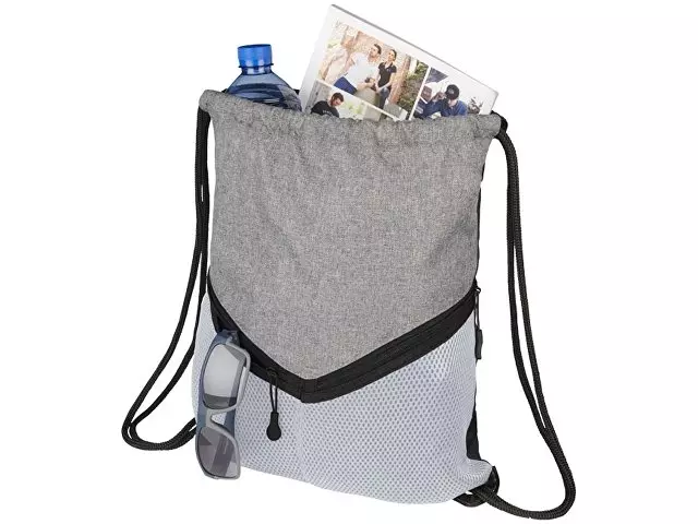 Спортивный рюкзак с застежкой на шнурке, большим основным отделением и двумя сетчатыми карманами на молнии. Сделано с прочной полиуретановой подложкой.