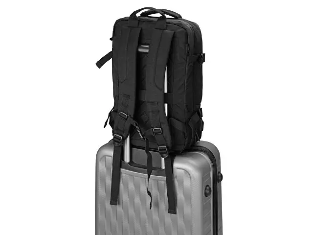 Идеальное решение для деловых поездок и путешествий в любую погоду - поместится все необходимое - от планшета и ноутбука до личных вещей и одежды. С рюкзаком можно ездить в любую погоду, потому что он изготовлен из водостойкого материала и снабжен водонепроницаемыми молниями. С помощью 4-х боковых фиксаторов вместительный рюкзак трансформируется в компактную сумку. Три вместительных отделения, включая: - Органайзер с 3-мя отделениями. - Отделение для одежды с сетчатой крышкой на молнии. - Отделение для планшета и ноутбука 15". Дополнительные характеристики: - 3 кармана на молниях снаружи на фронтальной стороне. - Внешний USB порт для зарядки устройств. - Ремень на спинке для надежного крепления на ручку чемодана. - Эргономичные лямки с регулировкой длины и фиксатором на груди. - Эргономичная спинка из EVA снижает нагрузку на спину. - Вместимость 35 л, максимальная нагрузка 20 кг. - Нетканый мешок для хранения в комплекте.