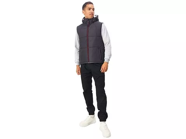 Теплый жилет «Vigour» можно носить в любую погоду. Удобные карманы на молнии для надежного хранения мелочей и большой внутренний карман для документов или денег, шнур с фиксаторами по низу изделия. Задняя часть жилета длиннее передней. Также достоинством этого жилета является съемный капюшон.