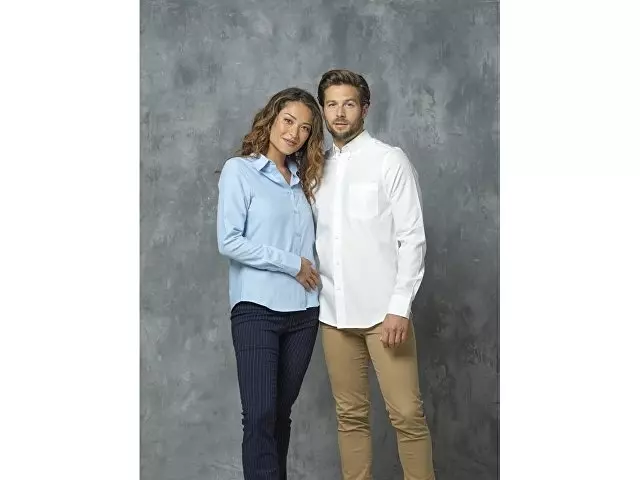 Рубашка мужская с длинным рукавом на семи пуговицах. Накладной карман на груди слева, на спинке складки из-под кокетки, манжеты с двумя пуговицами и пуговица по планке рукава.