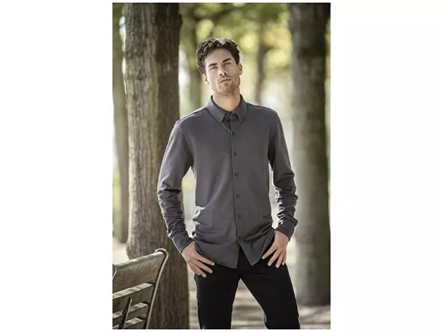 Мужская рубашка Bigelow из пике с длинным рукавом. Воротник из ткани изделия. Стрейтч-ткань. Регулируемый манжет на одной пуговице. Воротник на пуговицах. Атласная окантовка внутренней части горловины. Гравированные пуговицы в цвет изделия. Тканая метка. Двойное трикотажное пике, 95% хлопок и 5% эластан. 200 г/м².