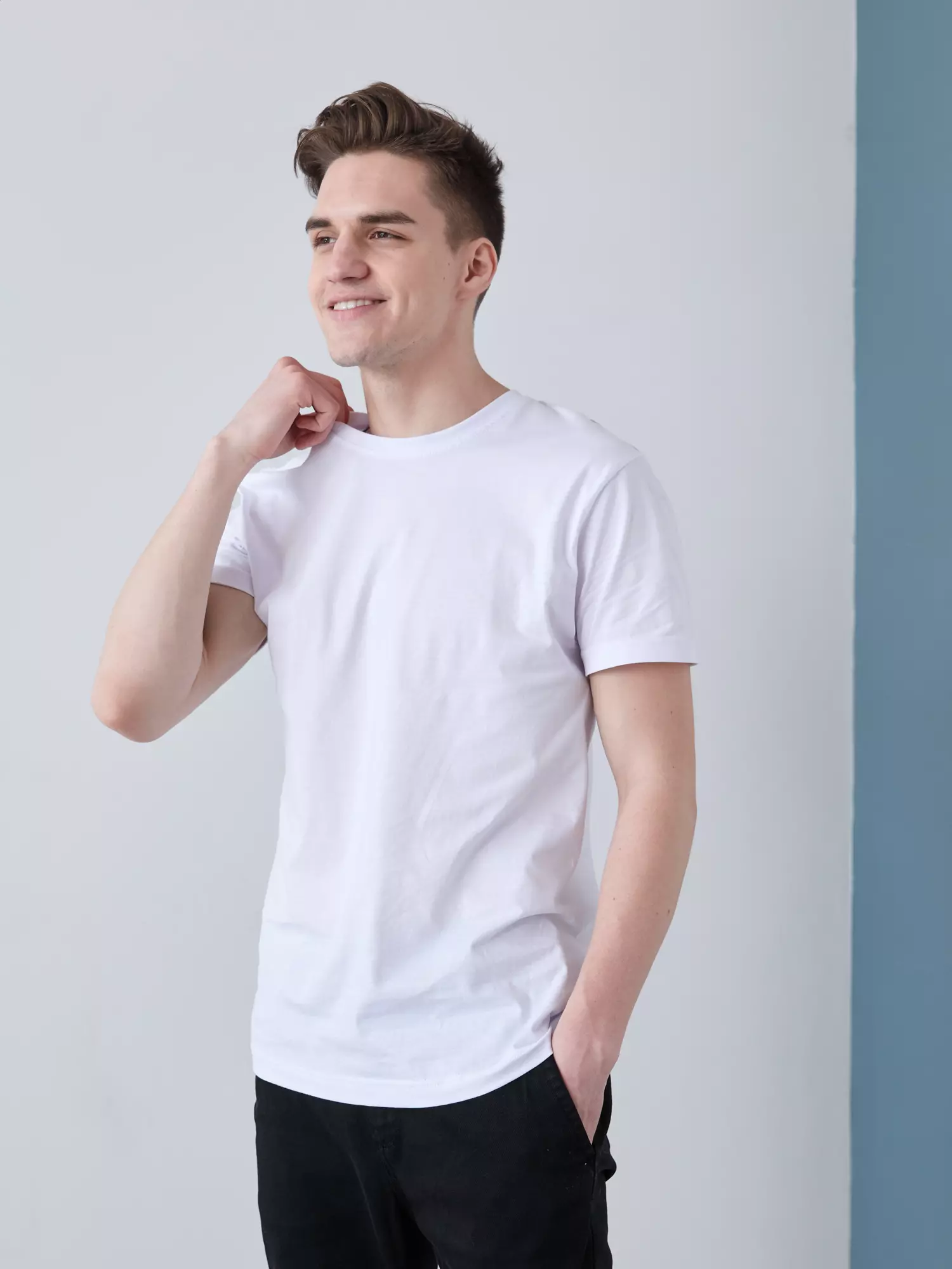 Классическая футболка прямого кроя с округлым воротом и втачным рукавом. Изделие не имеет бокового шва, что открывает новые возможности для реализации ваших креативных решений.