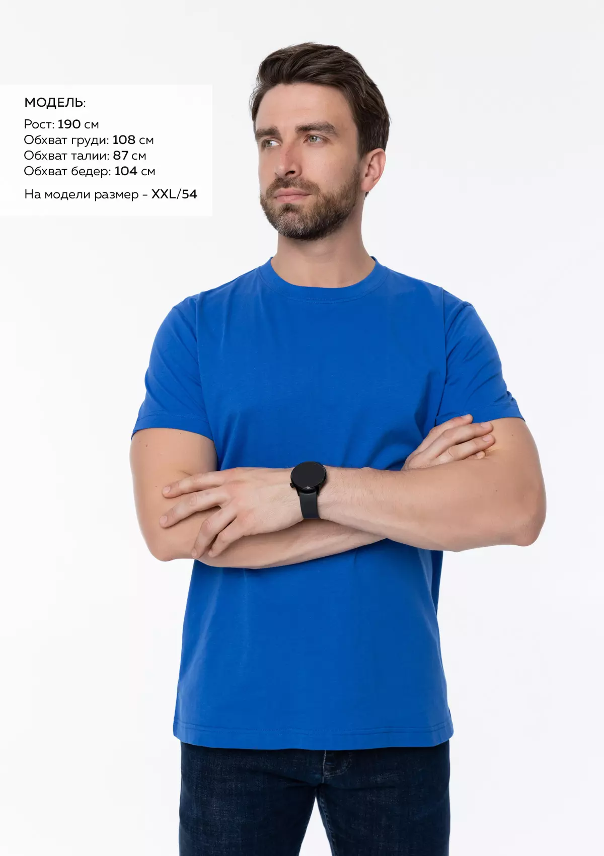Размер мужской футболки: XXL/54. Параметры модели: рост 190 см.; обхват груди 108 см.; обхват талии 87 см.; обхват бедер 104 см.