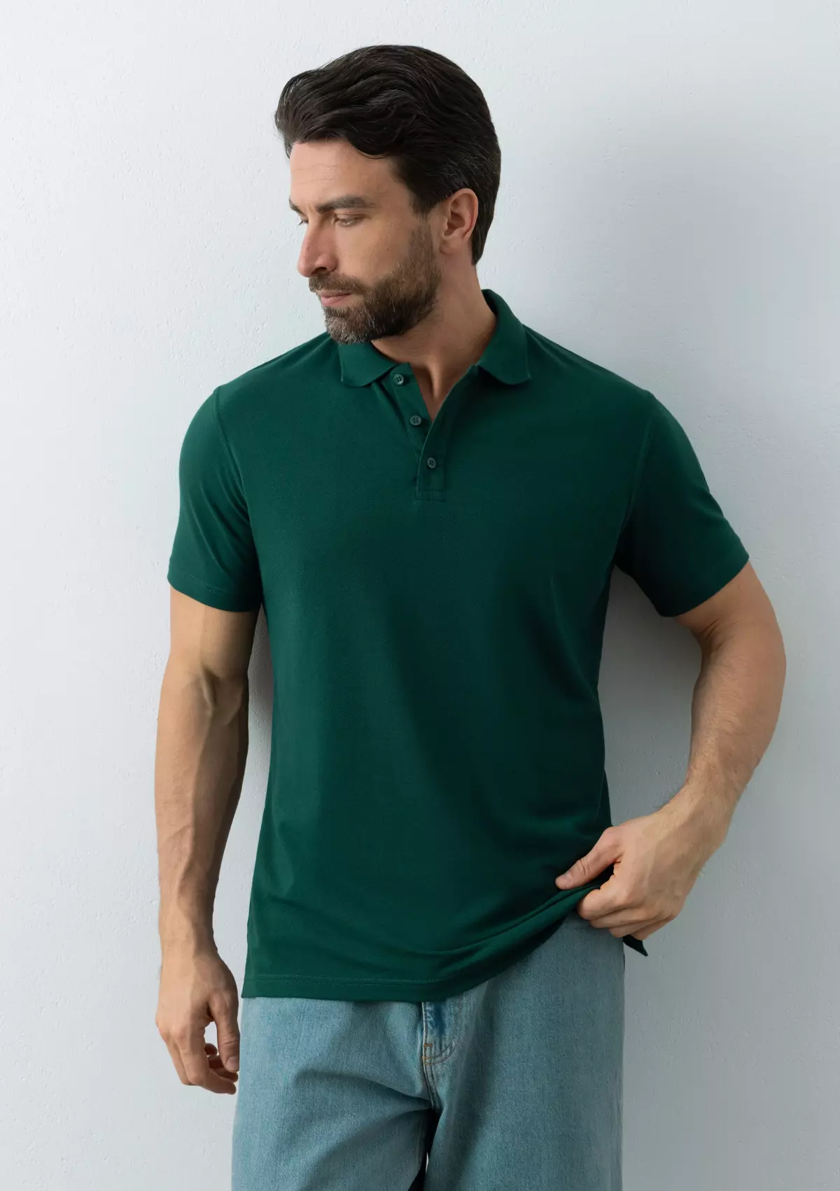 Поло выполнено из трикотажного пике с характерной фактурой. Износостойкое полотно имеет плотную и эластичную структуру, хорошо пропускает воздух и устойчиво к истиранию.