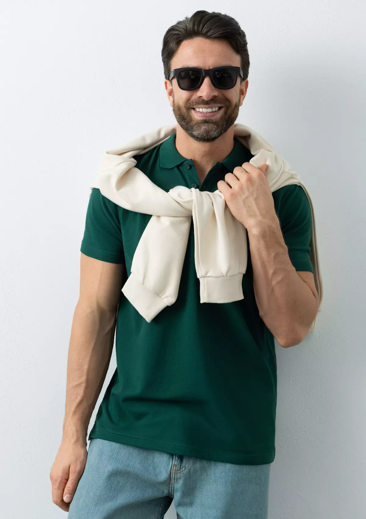 Поло выполнено из трикотажного пике с характерной фактурой. Износостойкое полотно имеет плотную и эластичную структуру, хорошо пропускает воздух и устойчиво к истиранию.