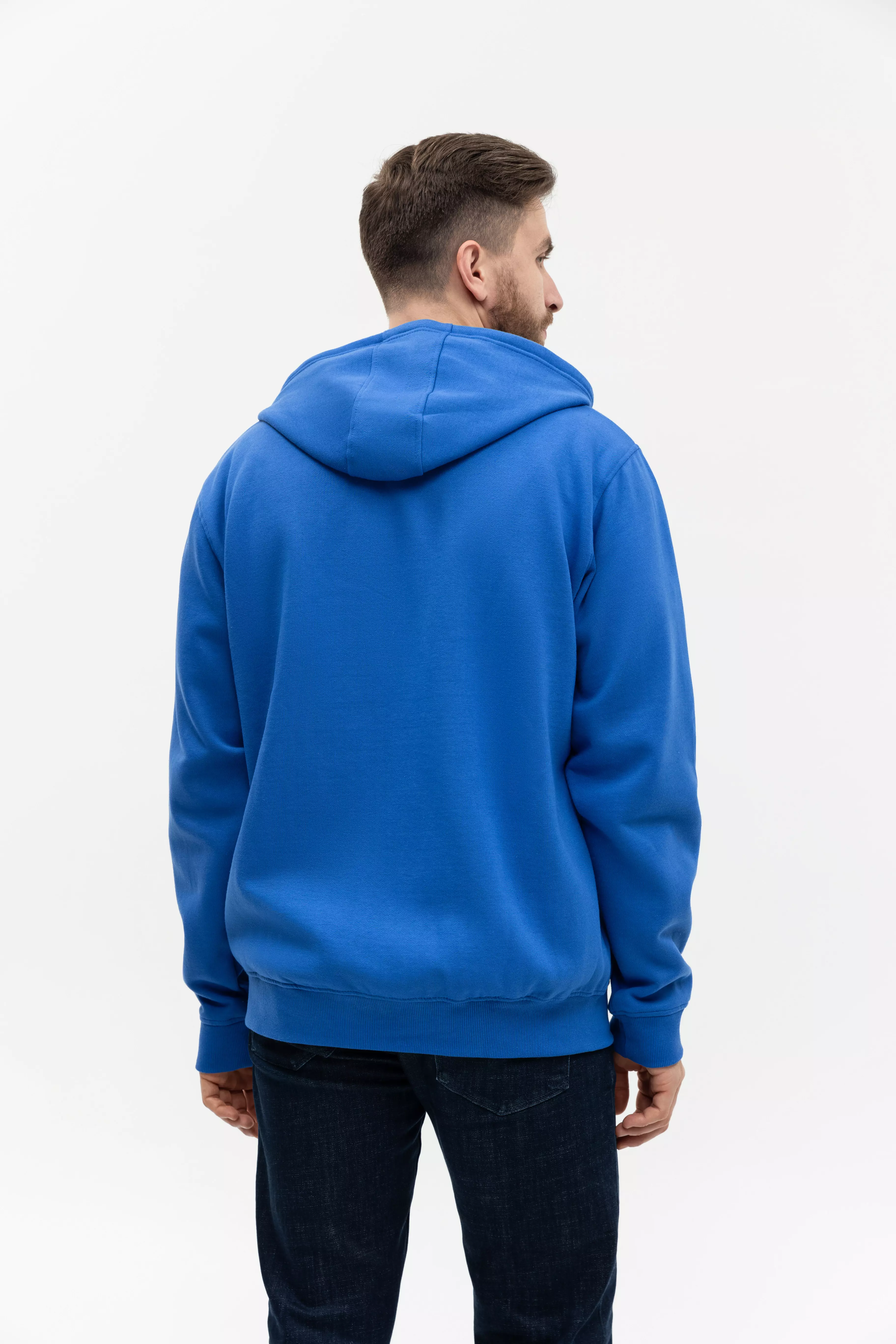 Утепленная толстовка выполнена из плотного и приятного к телу футера. Невесомый материал хорошо пропускает воздух и впитывает влагу. Благодаря добавлению синтетического волокна изделие обладает повышенной износостойкостью и эластичностью.