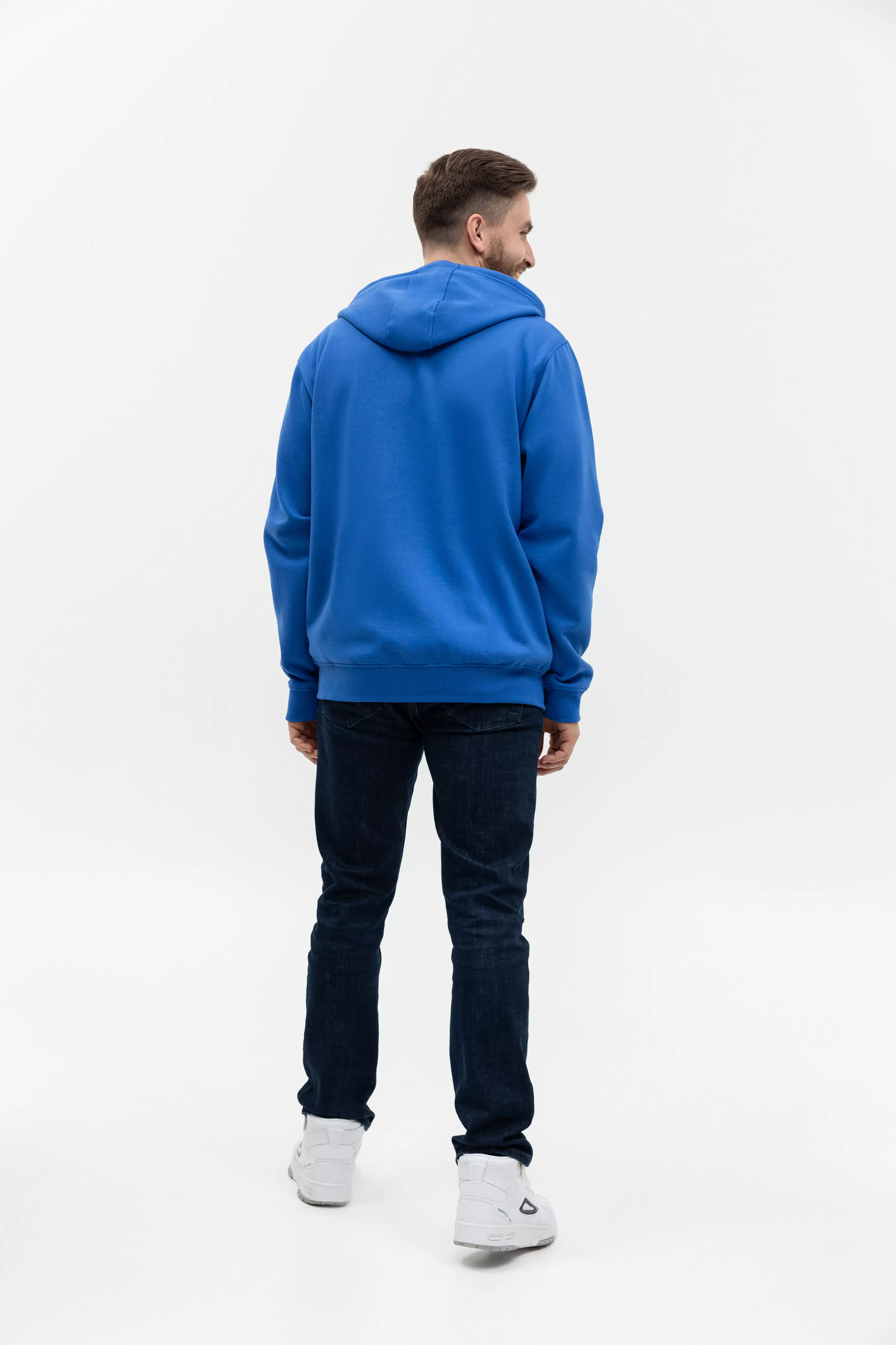 Утепленная толстовка выполнена из плотного и приятного к телу футера. Невесомый материал хорошо пропускает воздух и впитывает влагу. Благодаря добавлению синтетического волокна изделие обладает повышенной износостойкостью и эластичностью.