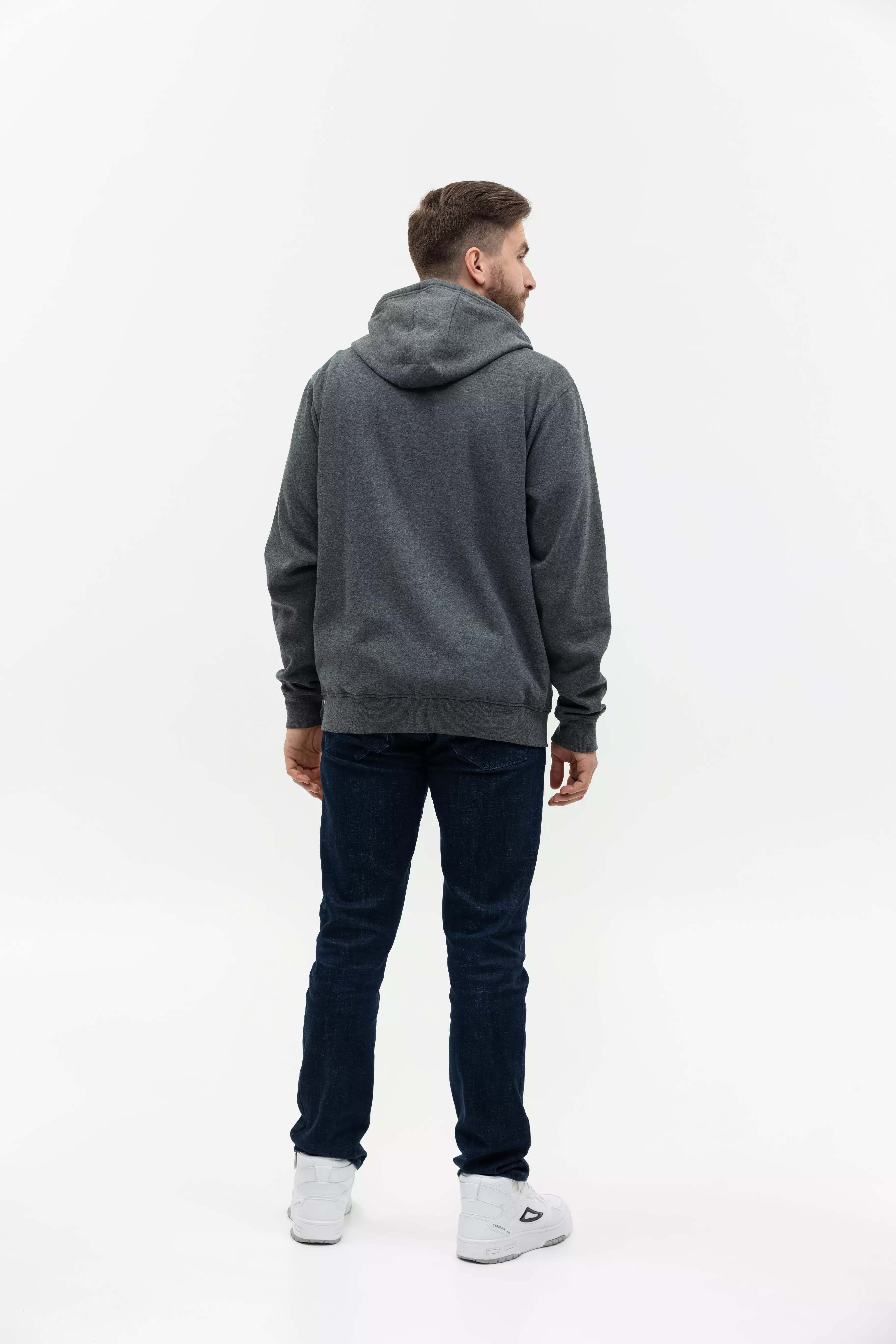 Утепленная толстовка выполнена из плотного и приятного к телу футера. Невесомый материал хорошо пропускает воздух и впитывает влагу. Благодаря добавлению синтетического волокна изделие обладает повышенной износостойкостью и эластичностью.