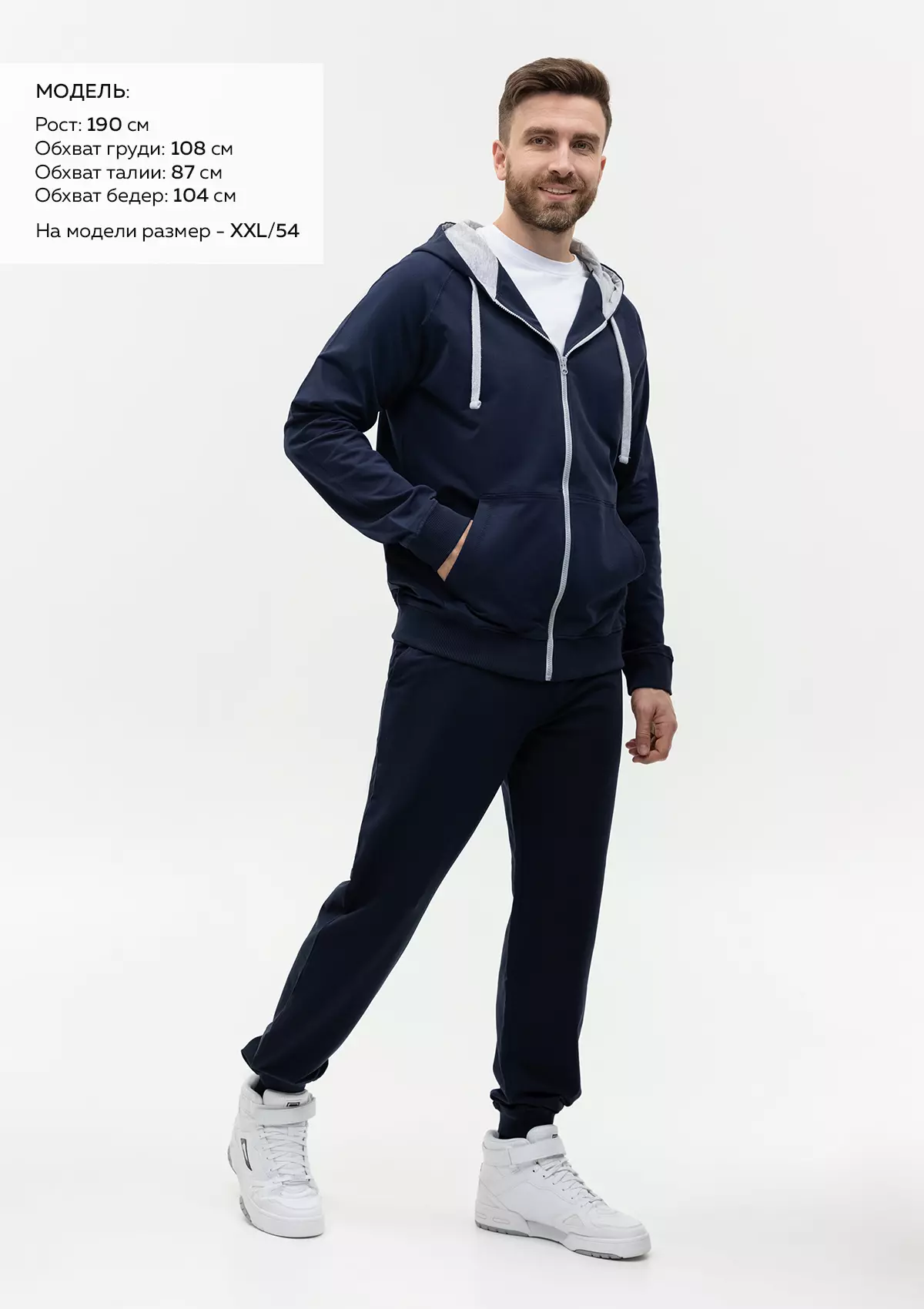 Размер мужской толстовки: XXL/54. Параметры модели: рост 190 см.; обхват груди 108 см.; обхват талии 87 см.; обхват бедер 104 см