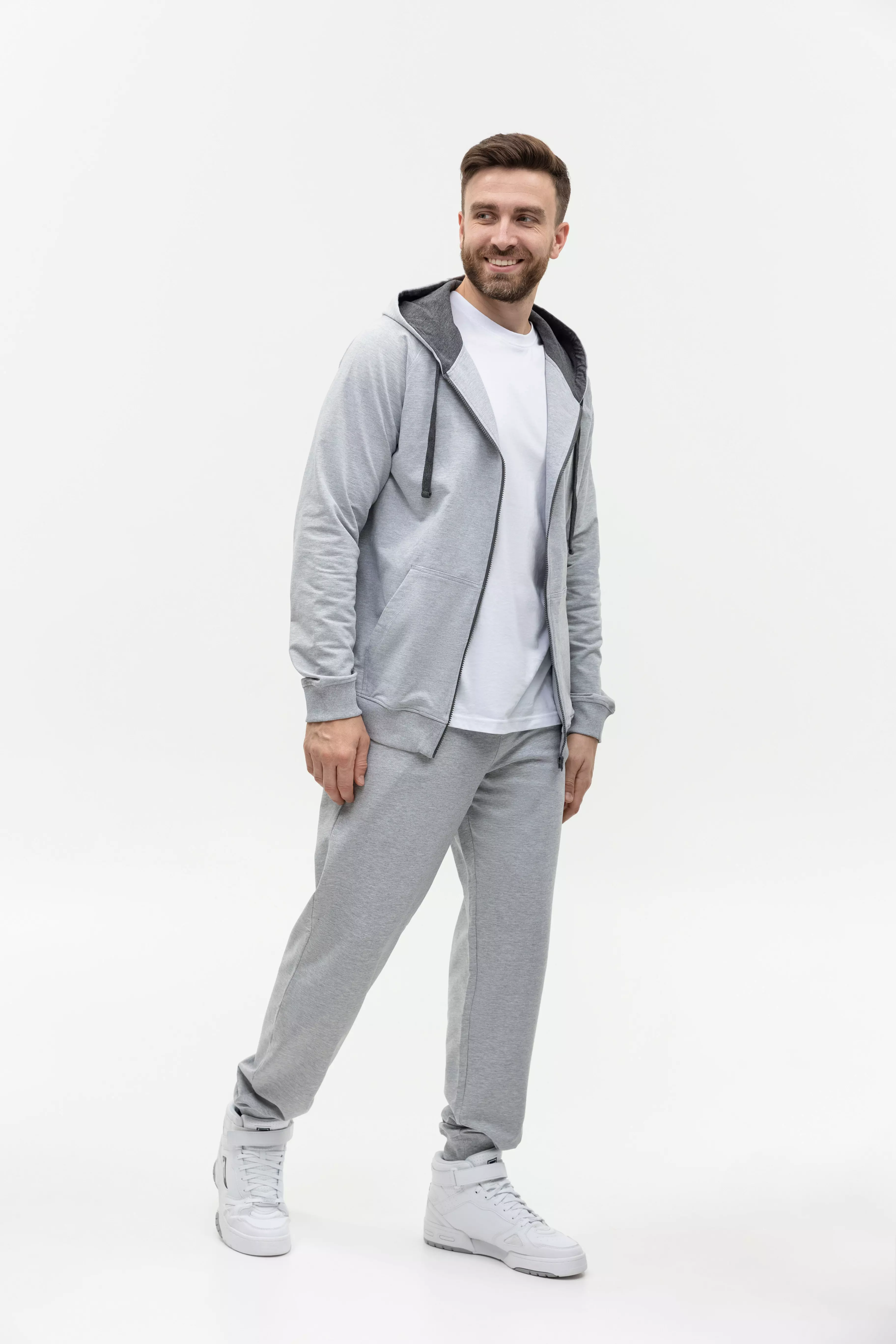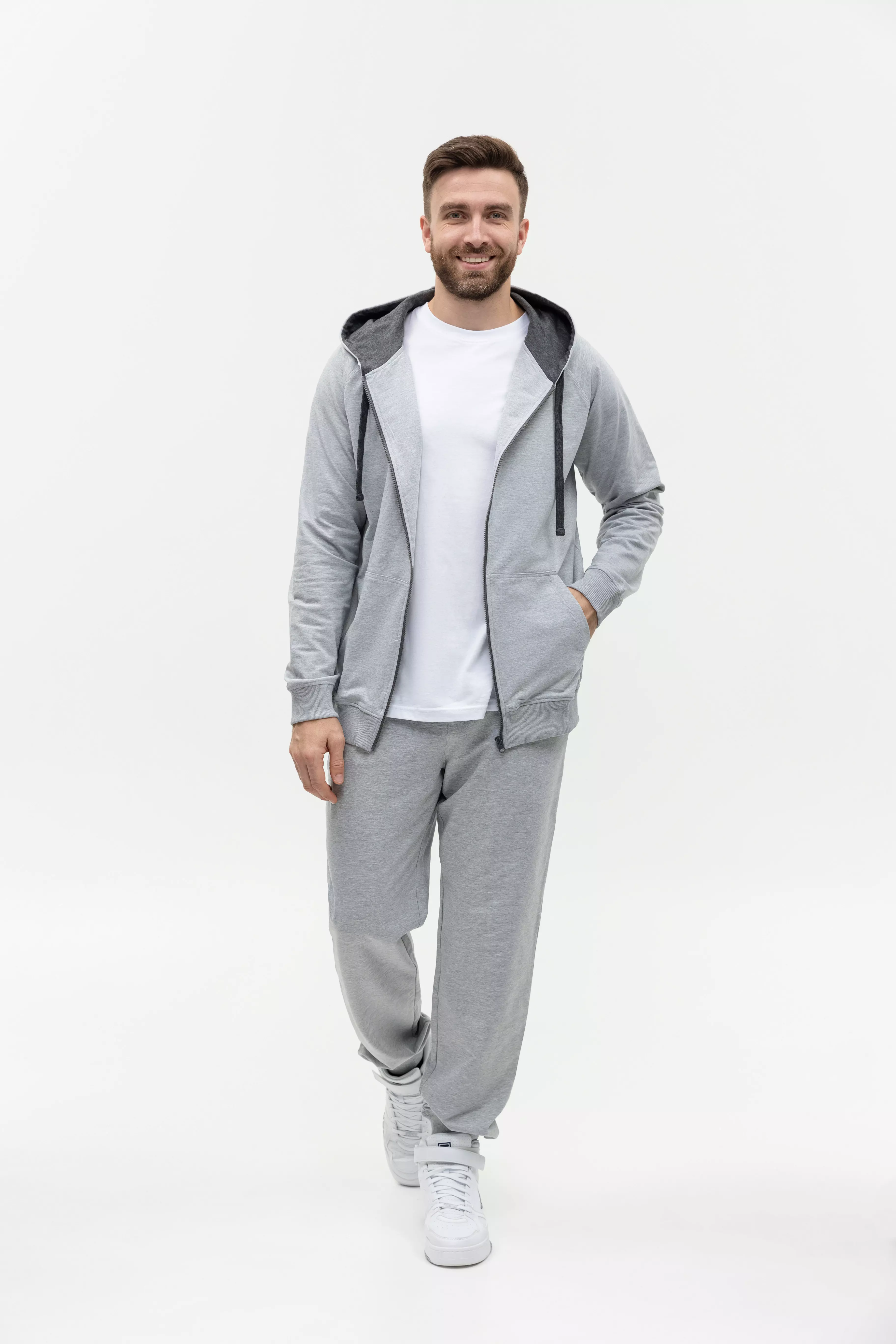 Мужская толстовка прямого силуэта с капюшоном комфортной глубины, рукавом-реглан, глубоким накладным карманом и застежкой на молнию контрастного цвета. Капюшон дополнен шнурком для регулирования прилегания, манжет и низ изделия оформлены широкой эластичной резинкой.