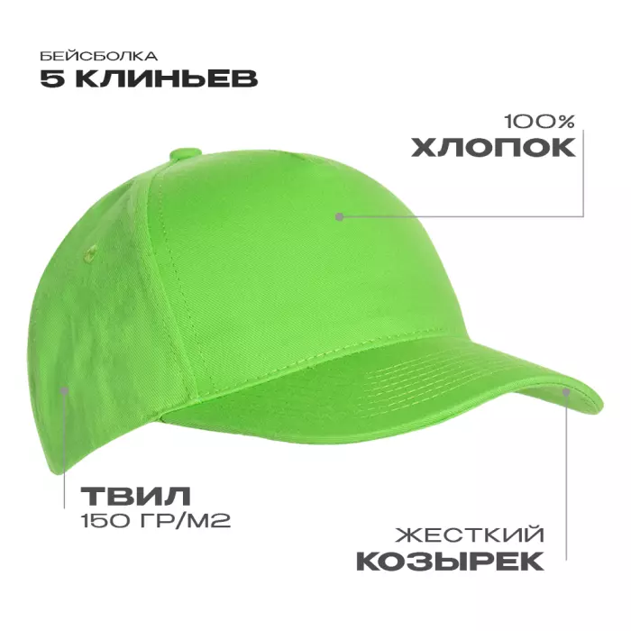 Для изготовления бейсболки использовали плотный хлопковый твил, благодаря которому изделие защитит от непогоды и надолго сохранит форму.