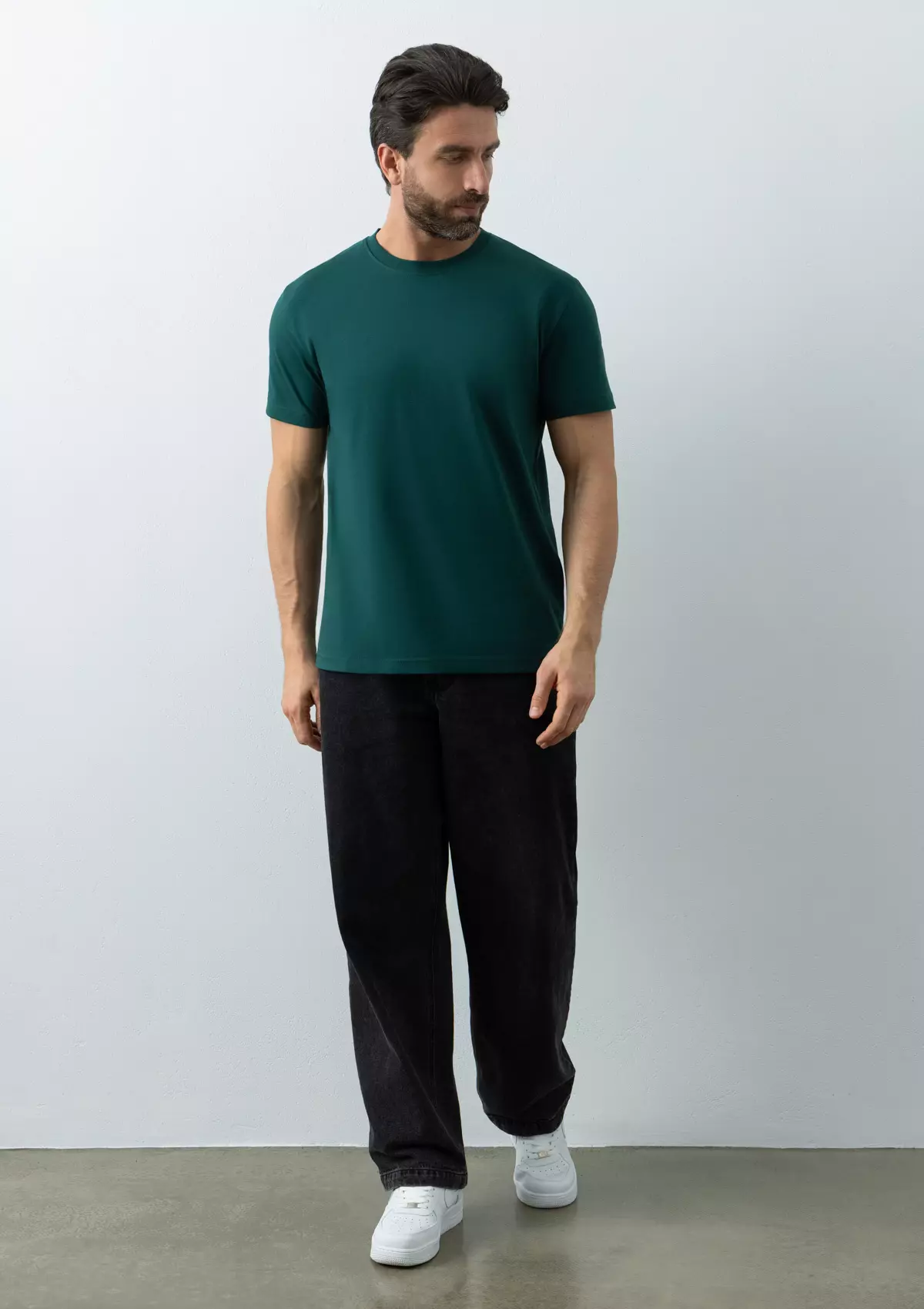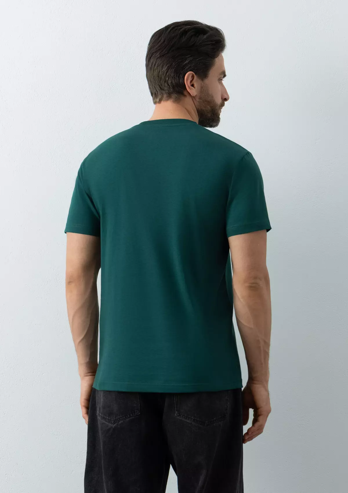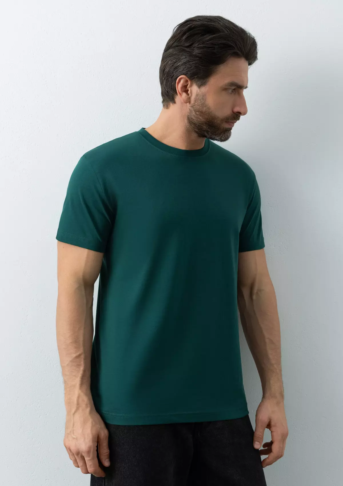 Мужская футболка прямого силуэта с округлым воротом и втачным рукавом.