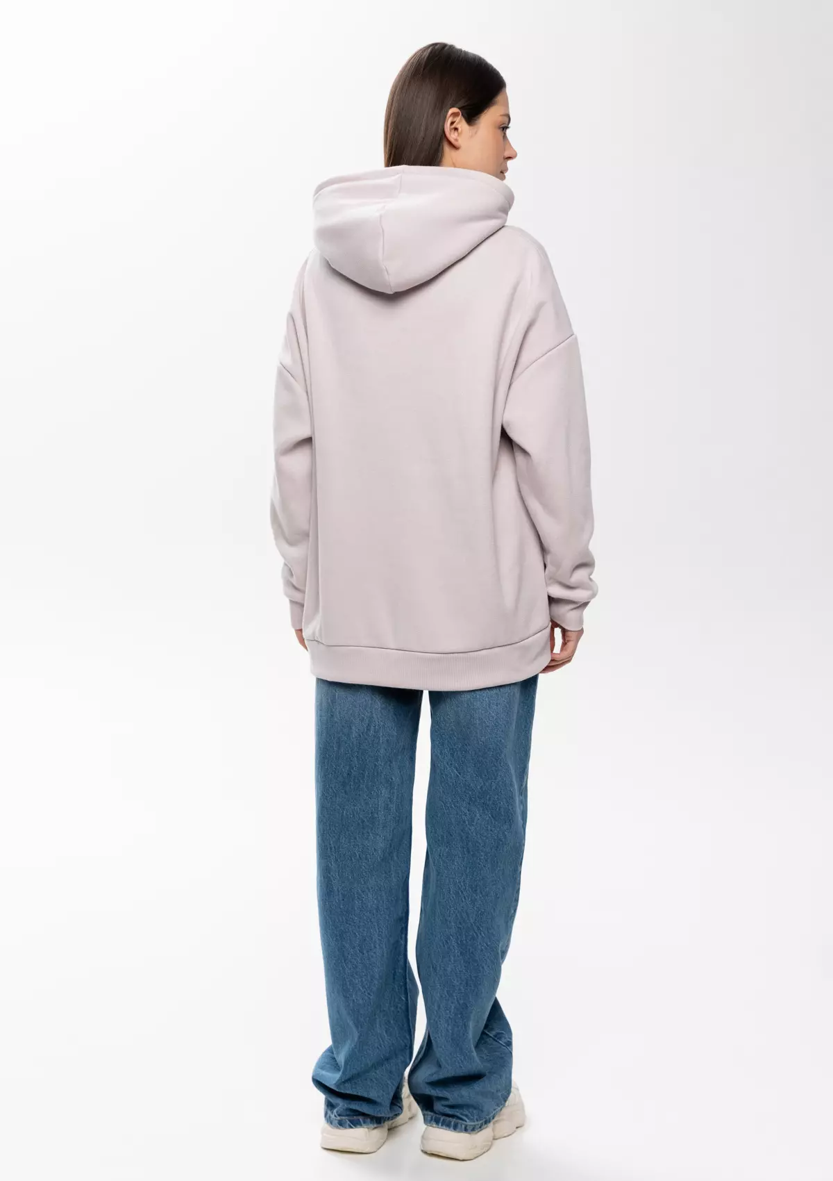 Толстовка свободного силуэта с капюшоном комфортной глубины, спущенной линией плеча и глубоким карманом-кенгуру. Манжет и низ изделия оформлены широкой эластичной резинкой в тон основному цвету.