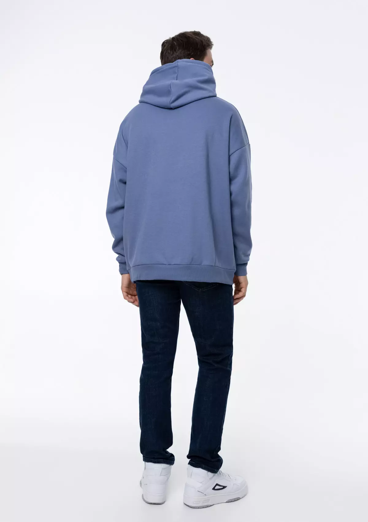 Толстовка свободного силуэта с капюшоном комфортной глубины, спущенной линией плеча и глубоким карманом-кенгуру. Манжет и низ изделия оформлены широкой эластичной резинкой в тон основному цвету.