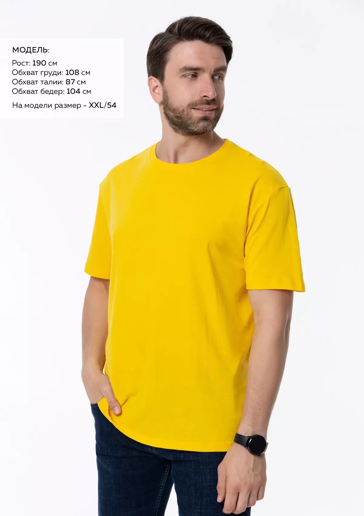 Размер мужской футболки: XXL/54. Параметры модели: рост 190 см.; обхват груди 108 см.; обхват талии 87 см.; обхват бедер 104 см.