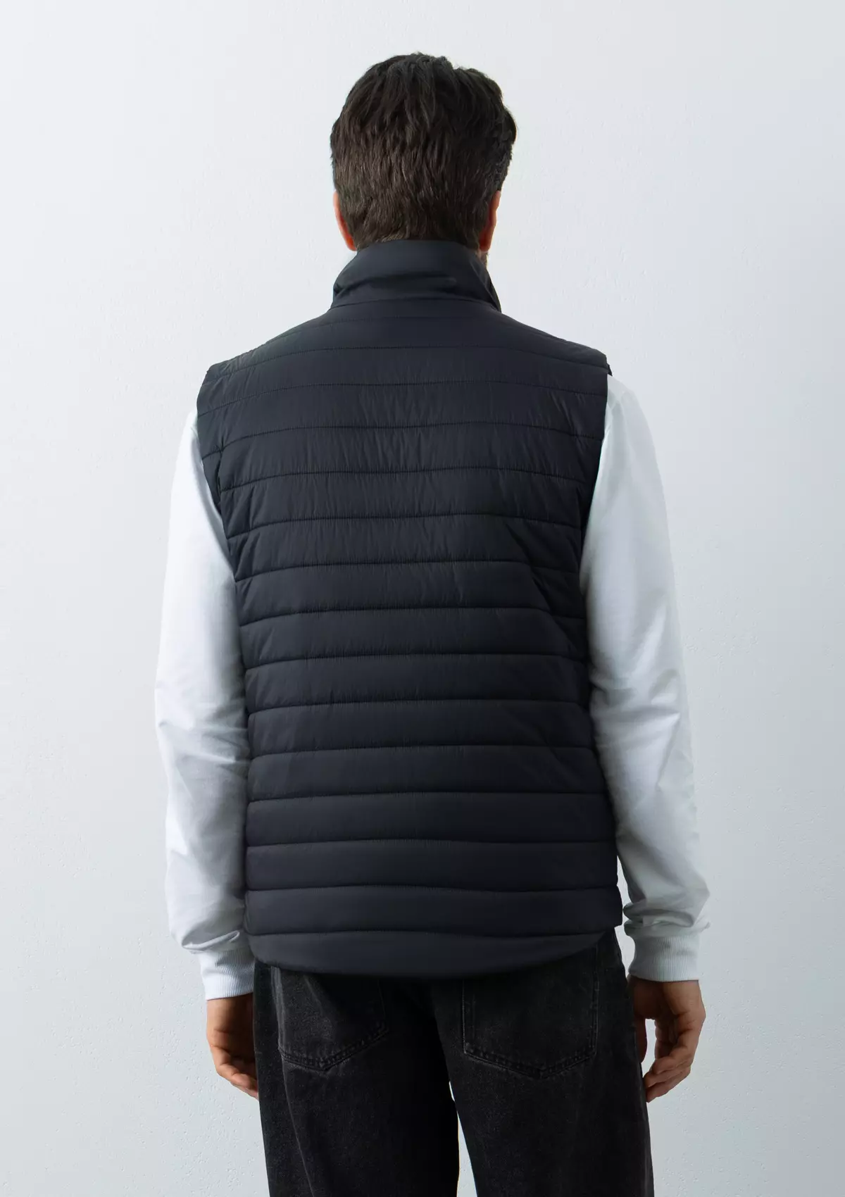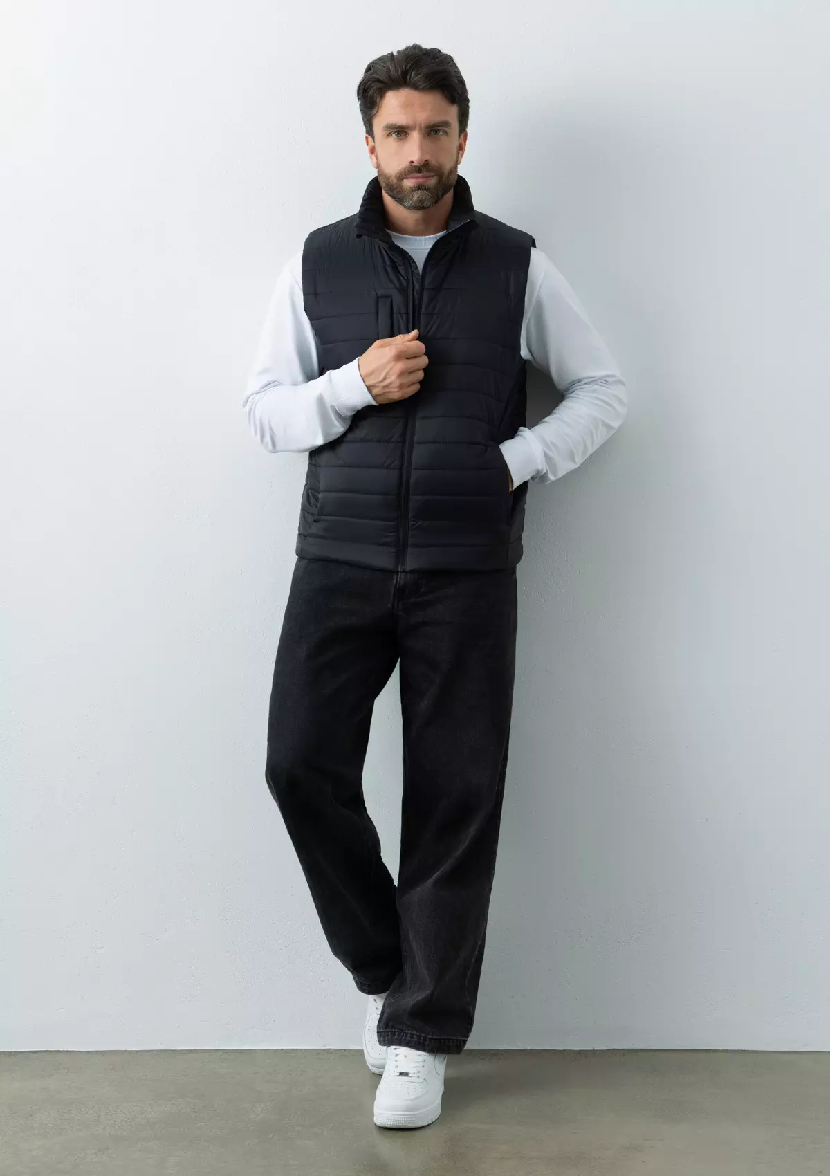 Ультралегкий жилет прямого силуэта с горизонтальной стежкой, воротником-стойкой, функциональным карманом по правой полочке, прорезным карманом и застежкой на молнию с внутренней ветрозащитной планкой. В комплекте прилагается сумка-чехол __amp__amp;#40;технологии нанесения: шелкотрансфер и ДТФ-печать__amp__amp;#41;.