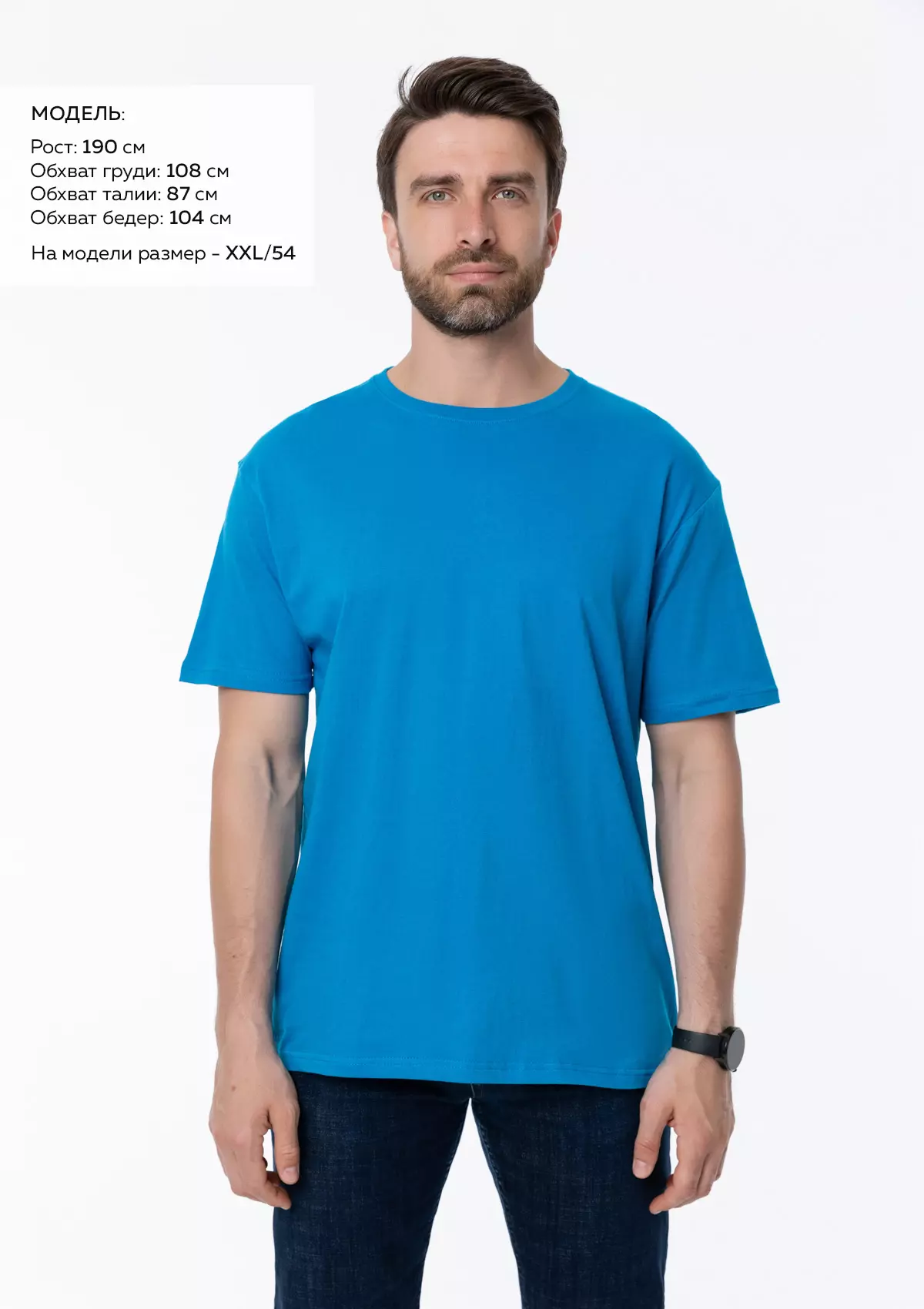 Размер мужской футболки: XXL/54. Параметры модели: рост 190 см.; обхват груди 108 см.; обхват талии 87 см.; обхват бедер 104 см.