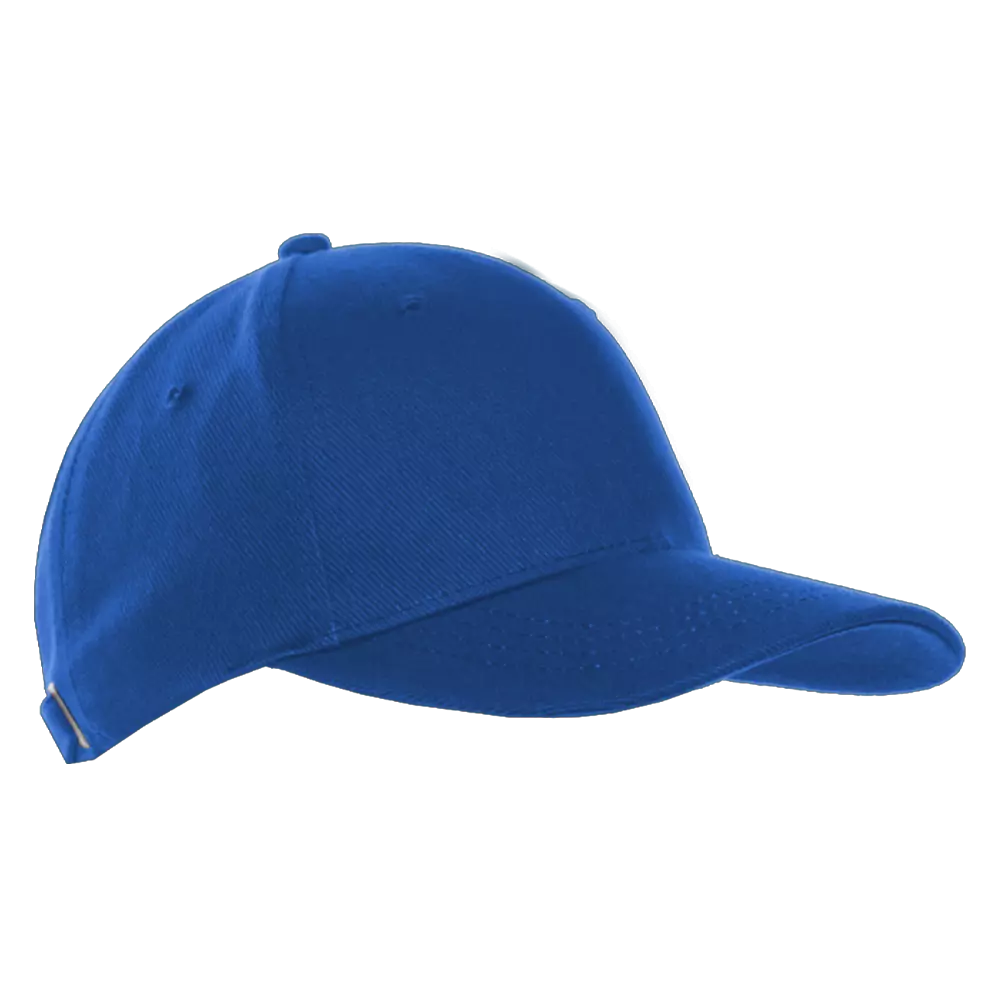 Бейсболка-пятиклинка без лобового шва с изогнутым жестким козырьком и регулируемой металлической застежкой.