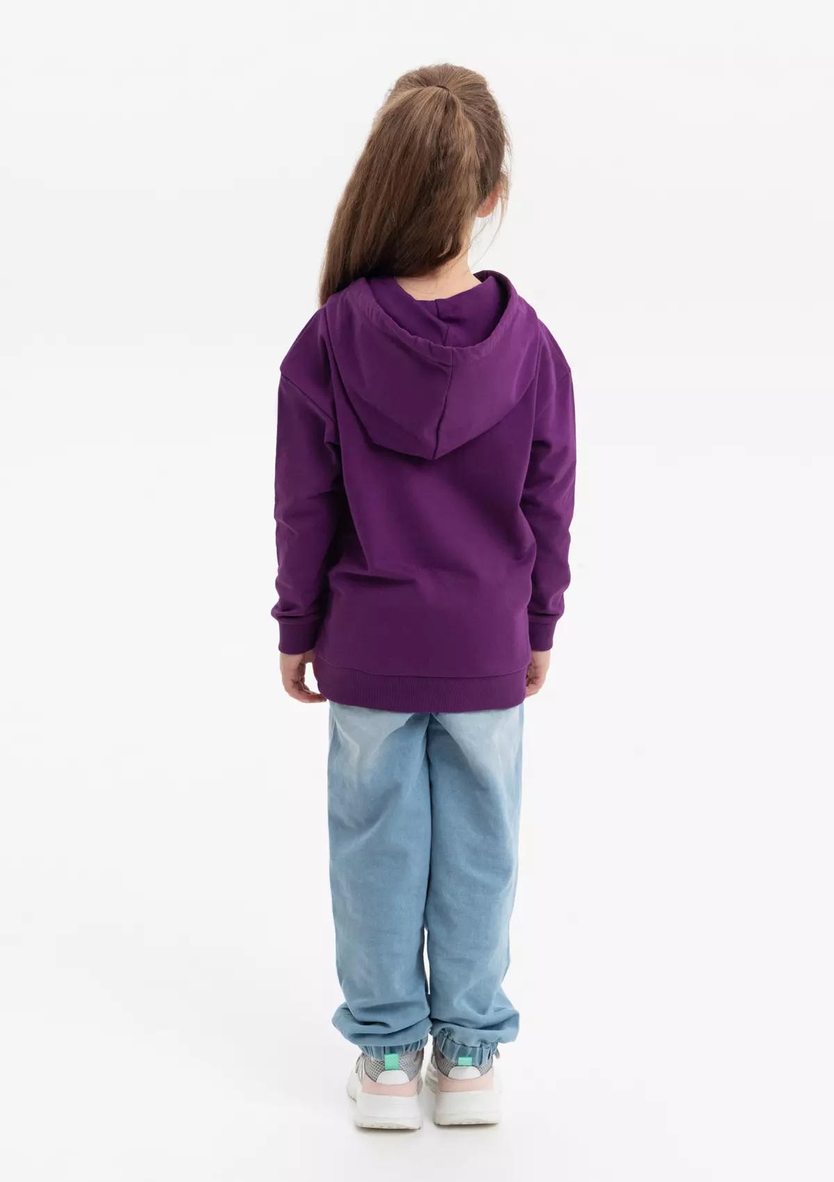 Модель прямого силуэта с капюшоном комфортной глубины, спущенной линией плеча и накладным карманом-кенгуру. Капюшон регулируется плоским шнуром, горловина спинки усилена киперной лентой. Манжет и низ изделия выполнены широкой эластичной резинкой в тон основному цвету.