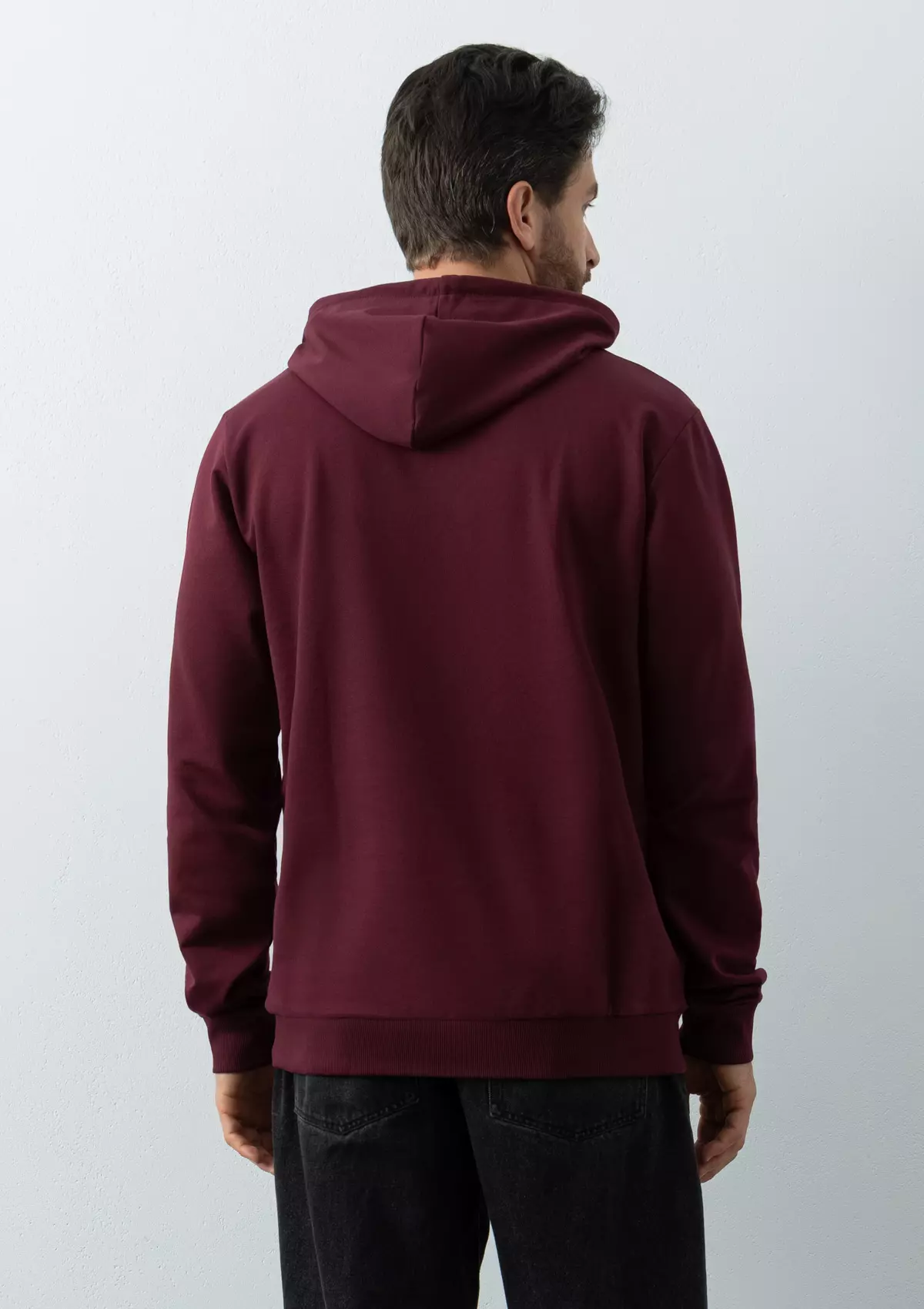 Толстовка прямого силуэта с капюшоном, втачным рукавом и карманом-кенгуру. Капюшон дополнен шнурком для регулирования прилегания, манжет и низ изделия оформлены широкой эластичной резинкой. Возможно два варианта исполнения: контрастные шнурок и бейка/шнурок и бейка в цвет толстовки.