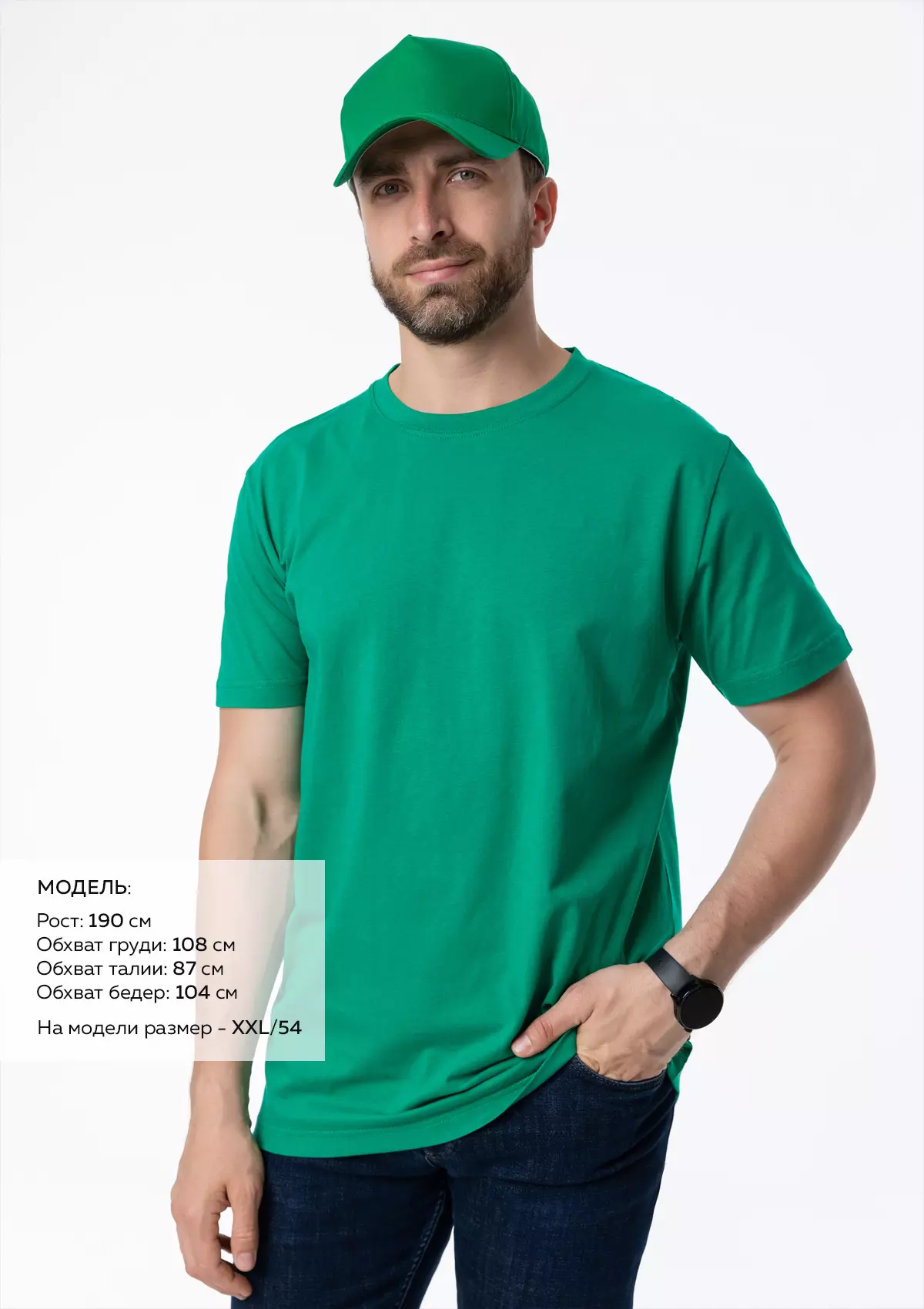 Размер мужской футболки: XXL/54. Параметры модели: рост 190 см.; обхват груди 108 см.; обхват талии 87 см.; обхват бедер 104 см.