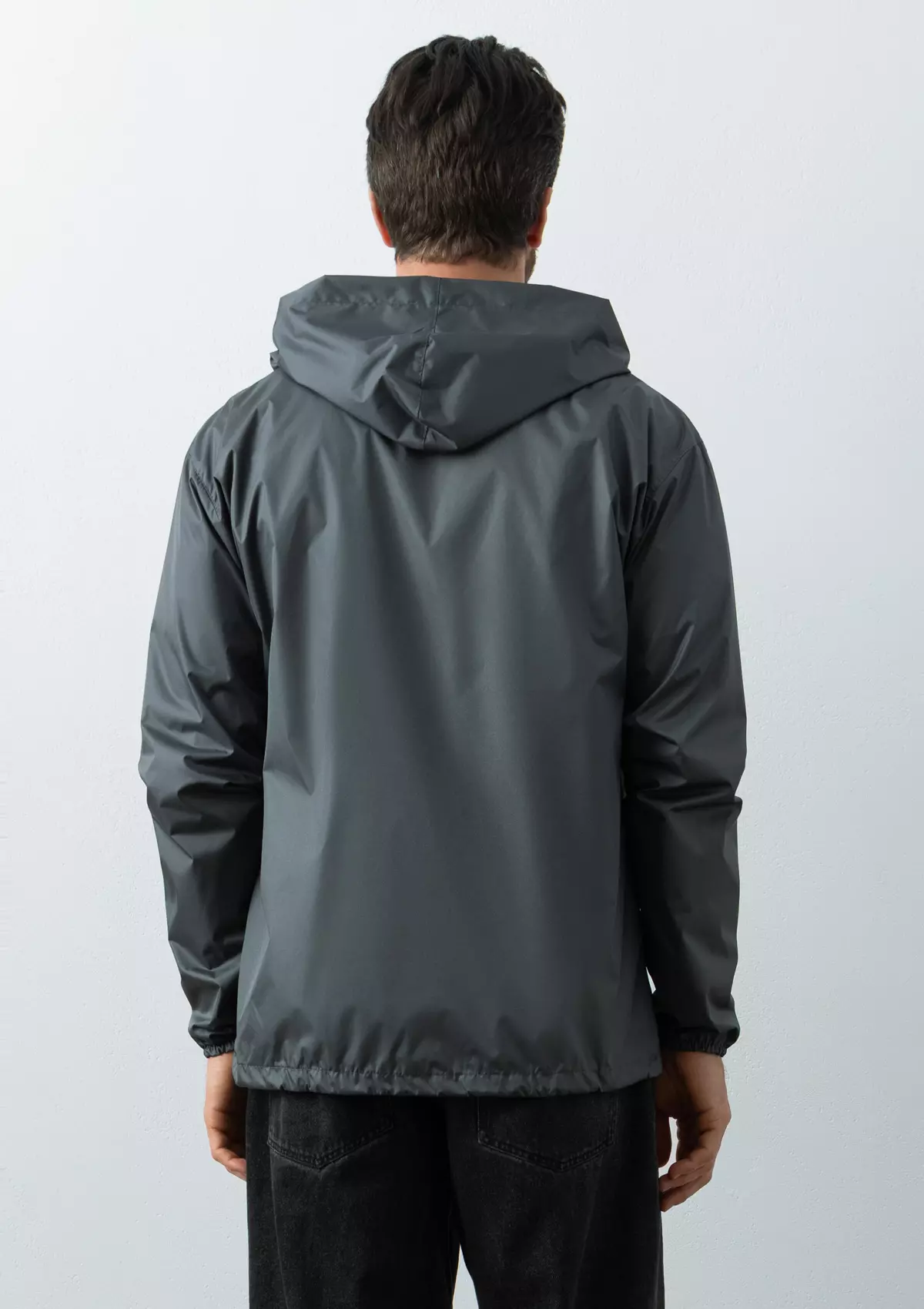 Ветровка прямого силуэта с глубоким капюшоном, спущенной линией плеча, прорезным карманом и застежкой на молнию. Для дополнительной защиты от ветра изделие дополнено эластичной резинкой на рукаве и кулисой по линии низа.