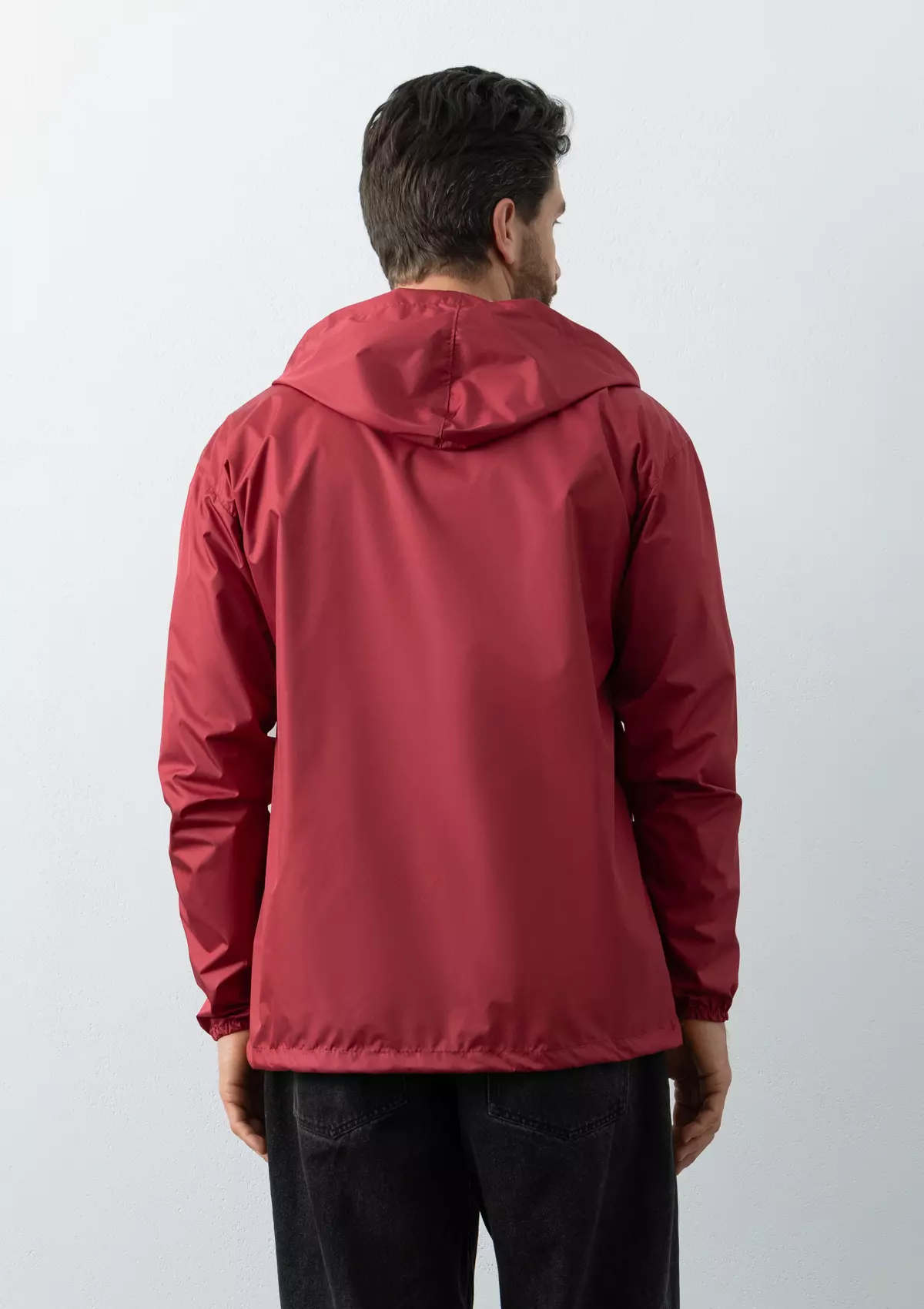 Ветровка прямого силуэта с глубоким капюшоном, спущенной линией плеча, прорезным карманом и застежкой на молнию. Для дополнительной защиты от ветра изделие дополнено эластичной резинкой на рукаве и кулисой по линии низа.