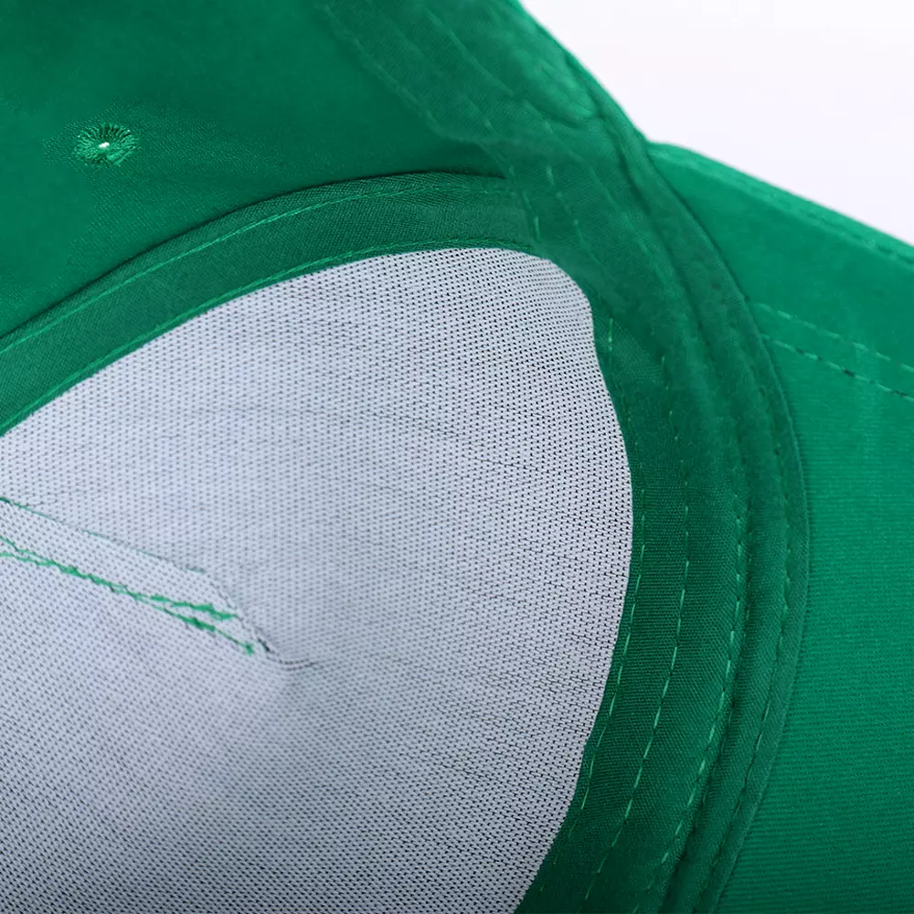 Для изготовления бейсболки использовали плотный хлопковый твил, благодаря которому изделие защитит от непогоды и надолго сохранит форму. Внутренняя обтачка из хлопчатобумажной ткани делает бейсболку комфортной для жаркой погоды.