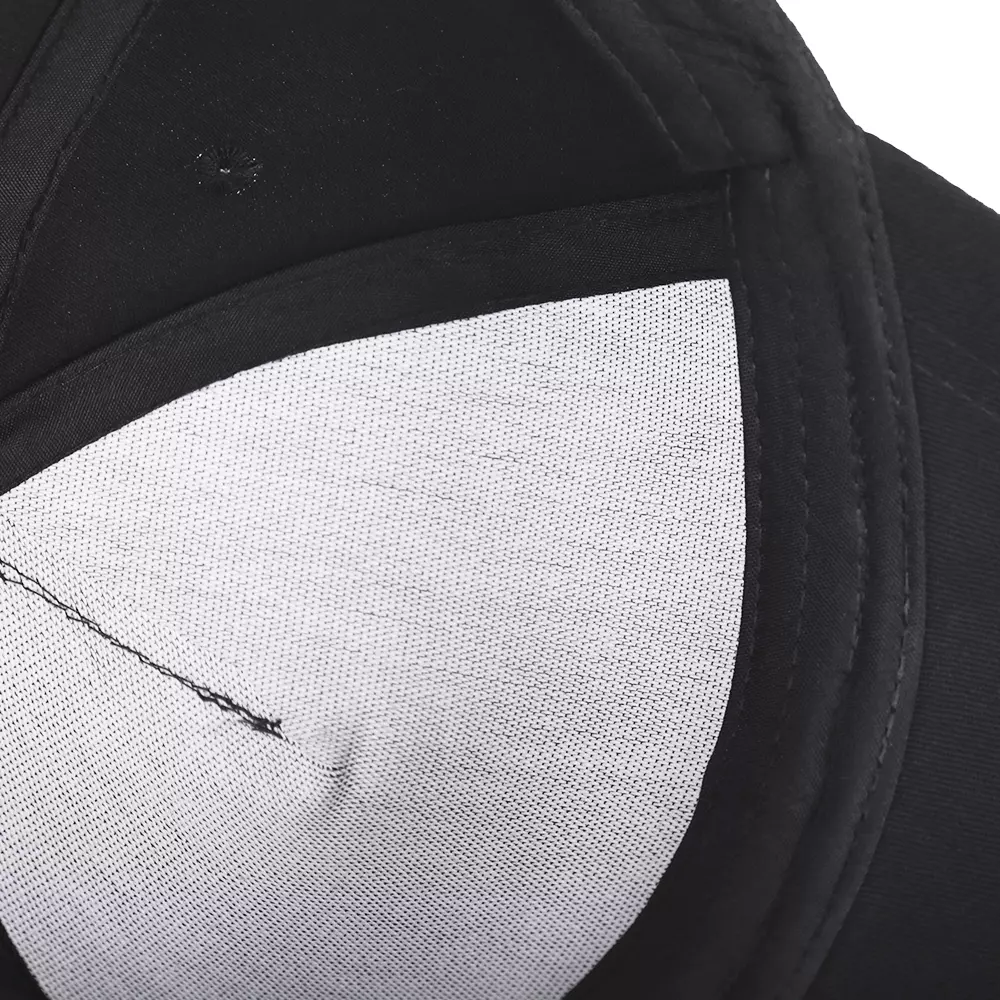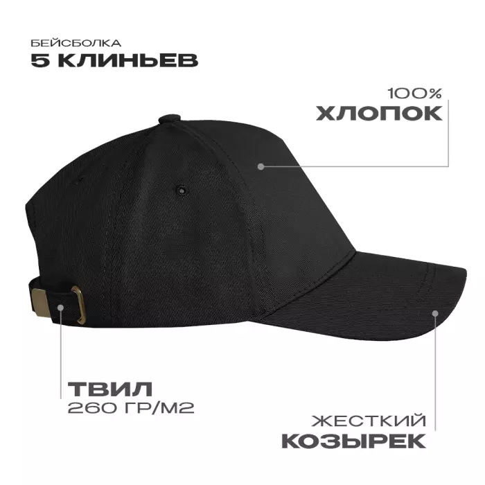 Для изготовления бейсболки использовали плотный хлопковый твил, благодаря которому изделие защитит от непогоды и надолго сохранит форму. Внутренняя обтачка из хлопчатобумажной ткани делает бейсболку комфортной для жаркой погоды.
