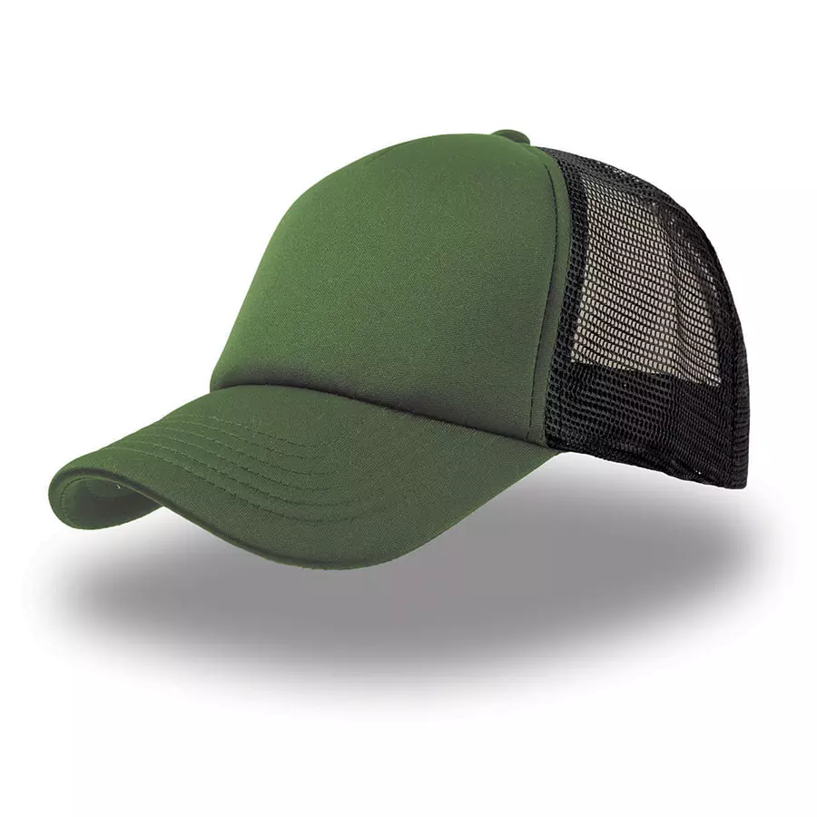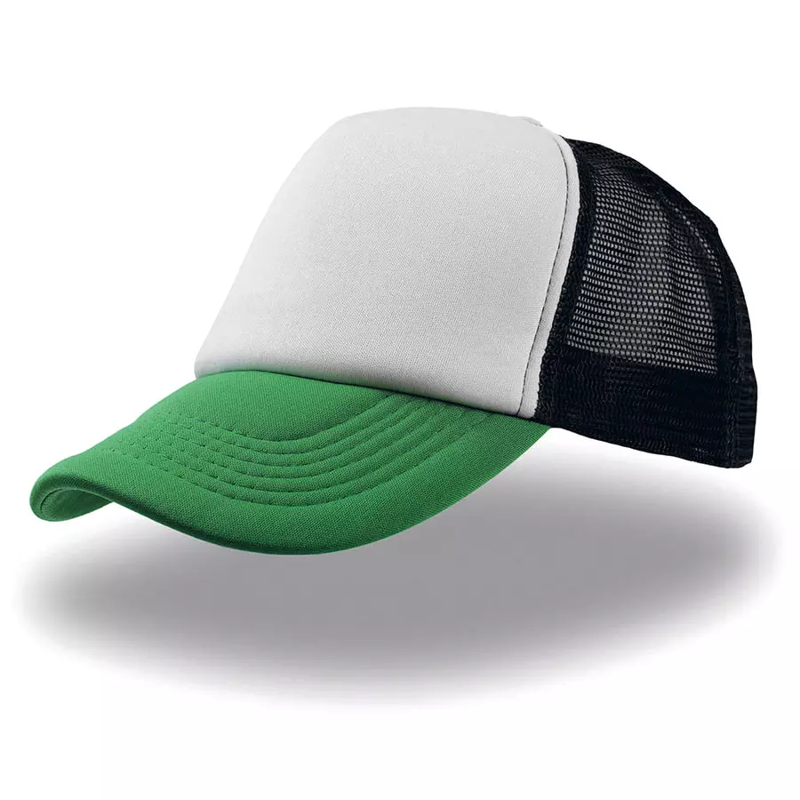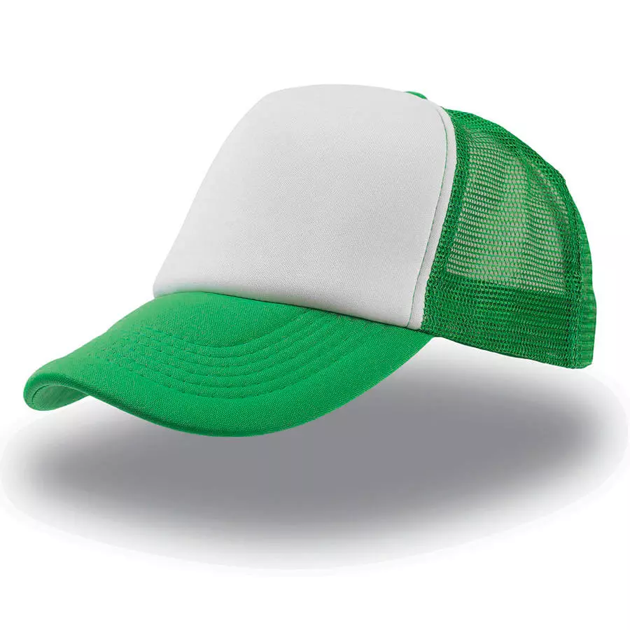 Бейсболка "RAPPER", 5 клиньев, пластиковая застежка, зеленый с белым, 100% п/э, плотность 80 г/м2