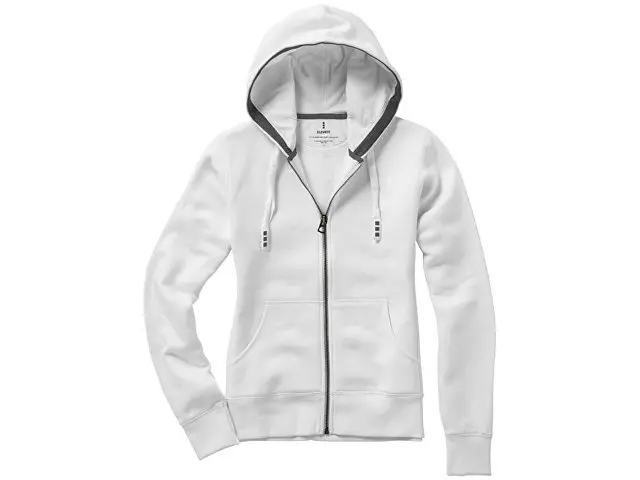 Женский свитер Arora с капюшоном и застежкой-молнией на всю длину. Стандартный покрой. Резинка 2х2 на боковых вставках, поясе и манжетах. Карман кенгуру. Мужская и женская модели с завязками на капюшоне. Подкладка внутри капюшона. Атласная лента внутри горловины. Принт лого сзади в тон изделия. Серебристые люверсы с лого. Ворсистый внутри для мягкости, тепла и комфорта. Трикотаж: 80% хлопок и 20% полиэстер, чесаная внутренняя сторона. 300 г/м².