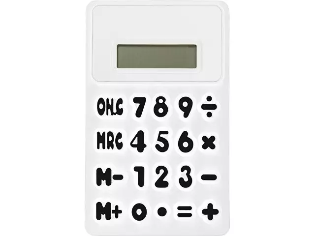 Гибкий калькулятор Splitz. Гибкий 8-разрядный калькулятор с белой отделкой, рельефными клавишами и функцией памяти. Батарейка включена в комплект. Силикон.