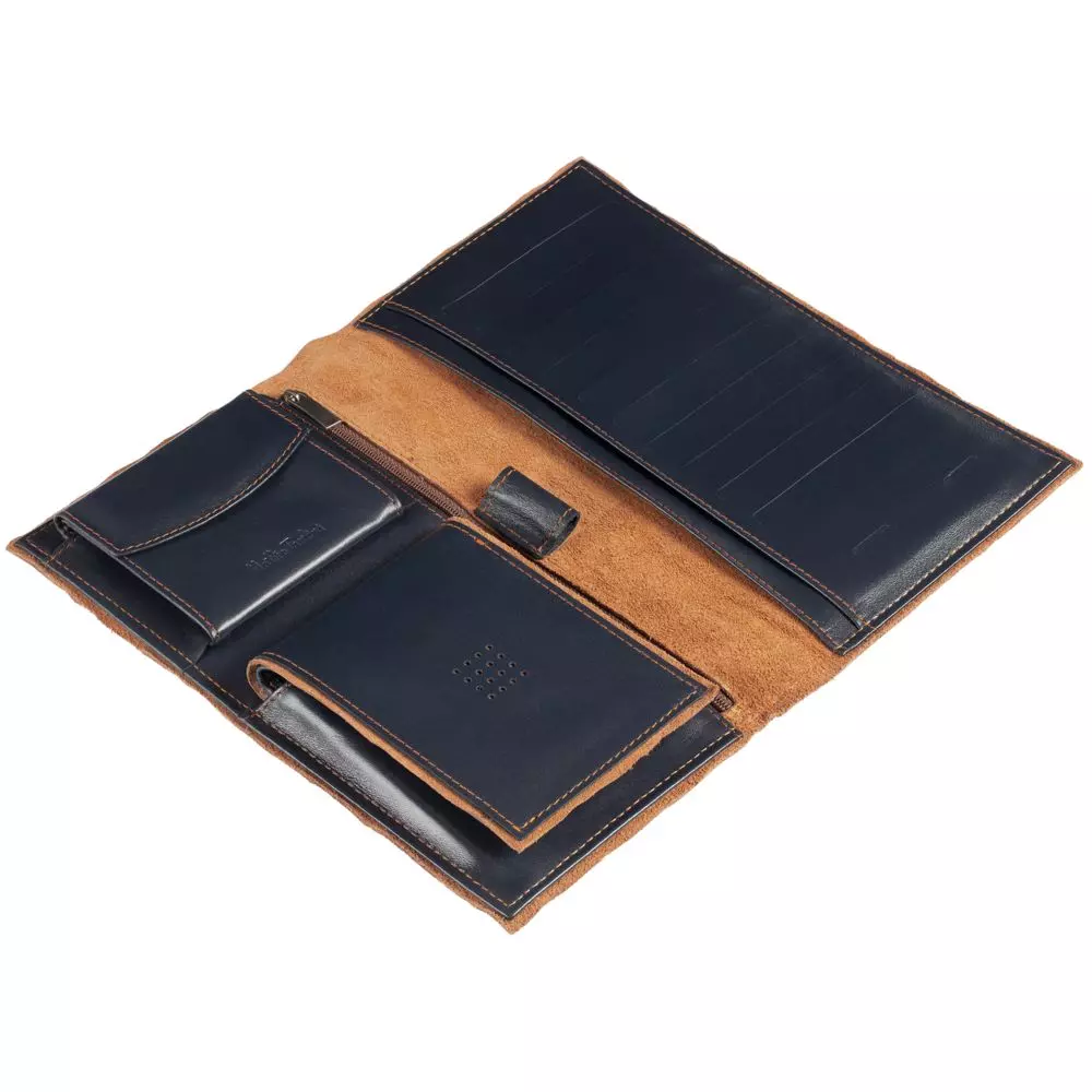 Те, кто часто путешествует, знают, что в пути и на месте отдыха нужны разные вещи: в дороге — паспорт и билеты, во время отдыха — местные деньги и банковские карты. Поэтому в дорожном наборе Palermo два предмета: органайзер и портмоне. Органайзером удобно пользоваться в поездке, а во время отдыха достаточно одного портмоне.О пляжах Палермо напоминает сочетание глубокого синего и теплого песочного цветов, гладкость кожи и приятная шероховатость замши. Еще один отличительный знак изделий Palermo — перфорация на обратной стороне изделия.Palermo — безупречный подарок для самых искушенных.Изделия линейки Palermo изготовлены из гладкой кожи глубокого синего цвета с контрастной отделкой из замши. Оформленные в едином стиле, они легко собираются в подарочные наборы.Все изделия линейки Palermo.Органайзер: отделения для банкнот, дорожных билетов и пластиковых карт, карманы для монет и sim-карт. Портмоне: отделения для банкнот и пластиковых карт, карман для монет. Набор поставляется в чехле и подарочной коробке.