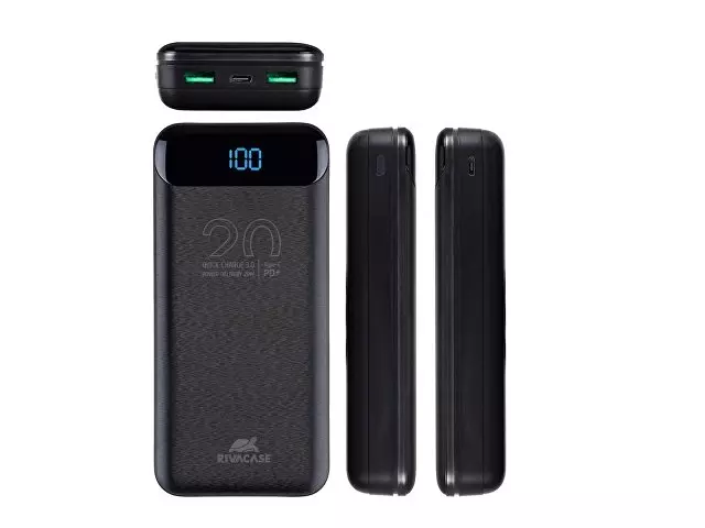 RIVACASE Литий-полимерный внешний аккумулятор с поддержкой QC 3.0 и PD и цифровым дисплеем • Литий-полимерный внешний аккумулятор емкостью 20000 мАч с поддержкий QC 3.0 и PD20W. • Быстрая зарядка Iphone • Поддержка режима быстрой зарядки Quick Charge (QC 3.0) и Power Delivery 20W (PD) • Поддержка режимов быстрой зарядки Huawei FCP & Samsung AFC • Защита от перегрузок, короткого замыкания, чрезмерного заряда и разряда. • Цифровой дисплей показывает уровень заряда в процентах Преимущества: Быстрая зарядка Iphone Поддержка режима Quick Charge (QC 3.0) и Power Delivery (PD 20W) . Поддержка режимов быстрой зарядки Huawei FCP & Samsung AFC Поддержка Huawei SCP 22,5W. Наличие дополнительного входа/выхода Type-C, поддерживающего режим Power Delivery Кабель USB- Type-C в комплекте Функция сквозного заряда: Можно одновременно заряжать внешний аккумулятор и подключенное к нему устройство. Емкости достаточно для 5 зарядок среднего смартфона. Время перезарядки внешнего аккумулятора : 6 часов (при использовании QC/PD зарядки) Спецификация: Литий-полимерная батарея:: 3.7В 20000 мАч 74В*ч • Bxoд: Micro USB 5B 2A / 9B 2A / 12B 1,5A (поддерживает QC 3.0) Type-C 5B 3A / 9B 2A / 12B 1,5A (поддерживает QC 3.0/PD 3.0) • Bыxoд: USB1 4,5 В 5 A/5 В 4,5 A/ 9 В 2 А / 12 В 1,5 А (поддерживает QC 3.0) USB2 4,5 В 5 A/5 В 4,5 A/ / 9 В 2 А / 12 В 1,5 А (поддерживает QC 3.0) Type-C 5 В 3 A / 9 В 2,2 А / 12 В 1,5 А (поддерживает PD20W 3.0/QC3.0) Размер: 143 x 67 x 28 мм Вес: 410г.