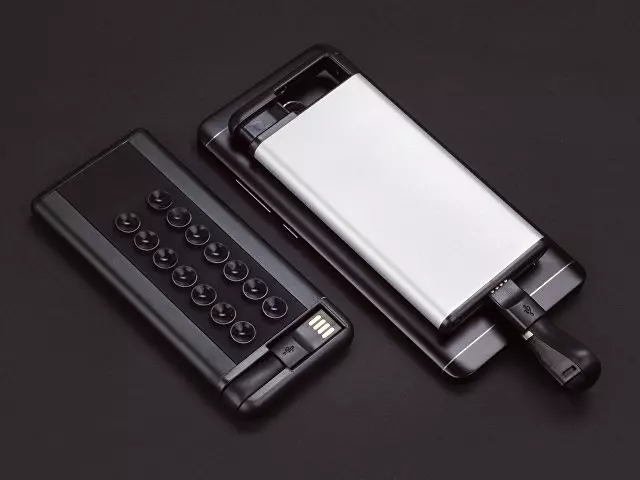 Портативное зарядное устройство (power bank) Octopus, 4000 mAh в тонком металлическом корпусе. На одной стороне расположены силиконовые присоски, благодаря которым смартфон или планшет станет единым целым с зарядным устройством. На другой имеется большая поверхность под нанесение. Внешний аккумулятор снабжен универсальным компактным кабелем 2-в-1 с разъемами usb-micro и Lightning. Универсальный кабель крепится в углубление на корпусе повербанка. Сила тока выходного разъема составляет 1.5А, следовательно ваши гаджеты будут заряжаться быстрее. На корпусе внешнего аккумулятора имеется индикатор заряда. Литий-полимерный аккумулятор эффективно сохраняет заряд, а также безопасен в использовании. Octopus создан специально, чтобы быть удобным – его приятно держать в руках, он может быстро зарядить ваше устройство и позволит им пользоваться в привычном режиме.