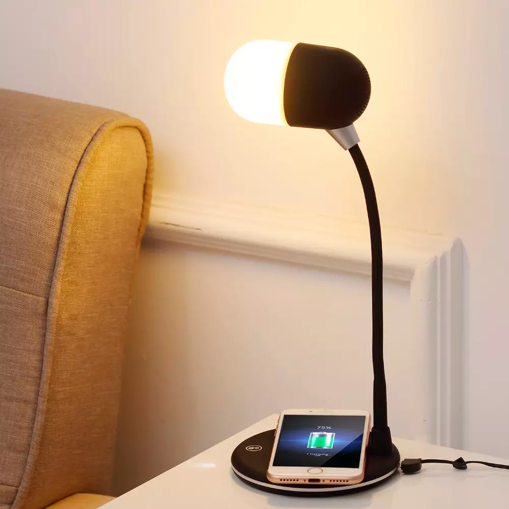 • Функции: настольная лампа + встроенная беспроводная зарядка + портативная колонка с мощным басовым динамиком