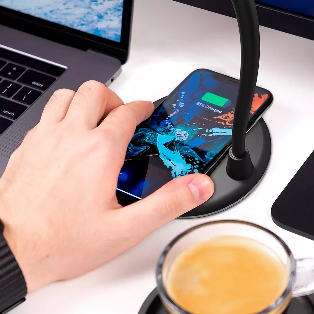 Настольная лампа "Alladin" с беспроводной зарядкой и колонкой - Черный AA