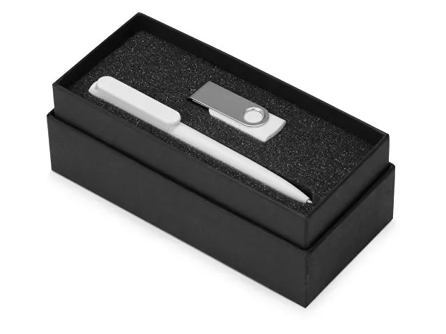 Как в разы повысить эффективность сотрудника на работе? Конечно, обеспечить его полезными и функциональными предметами! Подарочный набор "Qumbo" поможет человеку быстро и гибко адаптироваться к условиям и сосредоточиться на главном. Шариковая ручка «Umbo» будет полезна на деловых переговорах, когда нужно сделать какие-то срочные заметки или нарисовать коллегам схему. С флеш-картой «Квебек» разъемом USB 2.0 на 8 Gb документы и презентации всегда будут под рукой. Набор упакован в дизайнерскую подарочную коробку из переплетного картона кашированного дизайнерской бумагой эфалин с ложементом из акустического поролона SPG 2236. Доступен в нескольких цветах.