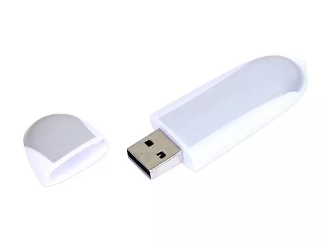 Флеш-накопитель промо овальной формы, 32 Гб. Пластиковый корпус, металлические вставки. Скорость чтения 15 Мб/с. Скорость записи 5 Мб/с.