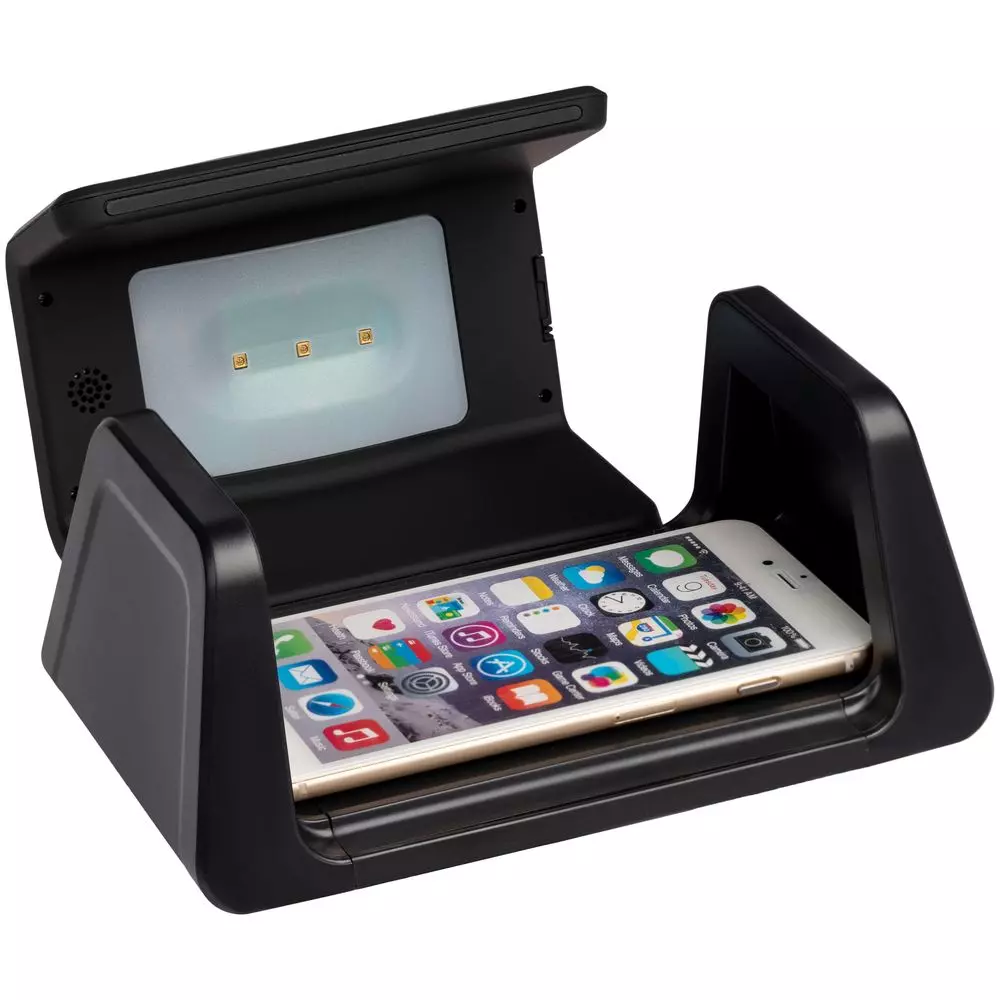 UV Depot — многофункциональное устройство, которое сочетает в себе функции настольных часов, будильника, станции для беспроводной и проводной зарядки устройств и стерилизатора.Зарядная станция совместима со всеми мобильными устройствами, поддерживающими технологию беспроводной зарядки Qi. Зарядка начнется автоматически при размещении смартфона на индукционной площадке. USB-порт для проводной зарядки расположен на задней стенке устройства.Стерилизатор может использоваться для дезинфекции смартфонов, ключей, монет, банкнот, ювелирных изделий, косметики и прочих мелких бытовых предметов из любых материалов.Часы позволяют следить за временем, а будильник — настроить время пробуждения или напоминания о необходимости завершить задачу. Беспроводная зарядка стандарта QiВход: 5 В, 2 A; 9 В, 1,67 AВыход беспроводной зарядки: 5 В, 2 AВыход USB: 5 В, 1 А (макс)Настольные часыБудильникСтерилизация ультрафиолетомДлина волны УФ-излучения: 275–395 нмМощность УФ-излучения: 0,75 ВтРаботает при питании от сетиАдаптер питания и кабель в комплектеПоставляется в индивидуальной упаковке.Внимание! Не все модели смартфонов поддерживают функцию беспроводной зарядки.