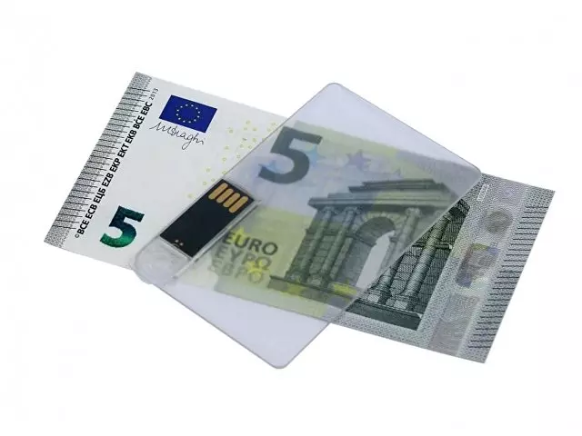Флеш-накопитель в виде прозрачной пластиковой карты., объем памяти 8 Гб. Пластиковый корпус. Скорость чтения 15 Мб/с. Скорость записи 5 Мб/с.
