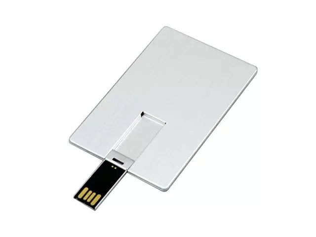 Флеш-накопитель в виде металлической карты, с раскладным чипом., объем памяти 16 Гб. Металлический корпус. Скорость чтения 15 Мб/с. Скорость записи 5 Мб/с.
