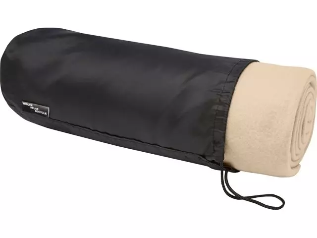 Плед из флиса, вторичного ПЭТ, подходит для использования в помещении и на улице. 100% переработанный полиэстер, 180 g/m2. Поставляется с сумкой для переноски из вторичного ПЭТ 190T с застежкой на шнурке. Размер сумки d13 х 34 см. Упаковано в полиэтиленовый пакет из переработанного материала.