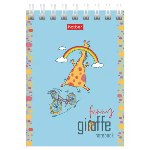 Блокнот МАЛЫЙ ФОРМАТ А7, 60 л., гребень, картон, клетка, HATBER, "Веселый жираф", 081165, 60Б7В1гр