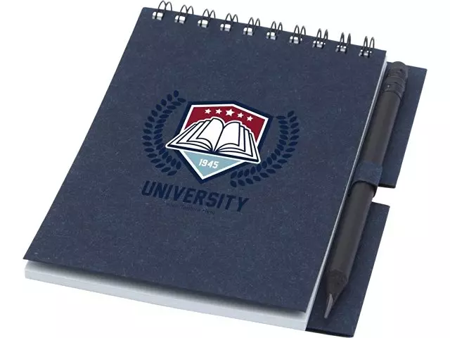 Блокнот на гребне из 40 листов плотностью 80 г/м², обложка и листы изготовлены из переработанной бумаги, соответствующей FSC, без декора. В комплект входит черный карандаш. Блокнот изготовлен в Италии.