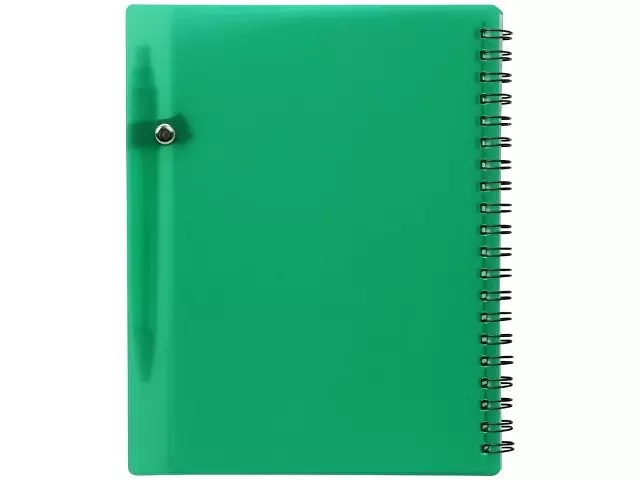 Блокнот «Контакт» в полипропиленовой обложке переплетен на пружине. В обложке блокнота предусмотрено окошко, в которое можно поместить визитную карточку или полиграфическую вставку. В комплекте с блокнотом идет ручка, которая вставляется в петельку сбоку. Размер окошка внешний 8,4 х 4,8 см, внутренний 10 х 6,5 см.