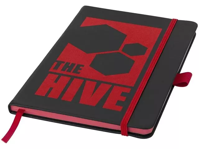 Блокнот Color edge A5. Блокнот А5, 80 листов бежевой бумаги (70 г/м2). С закладкой и эластичной застежкой. ПУ.